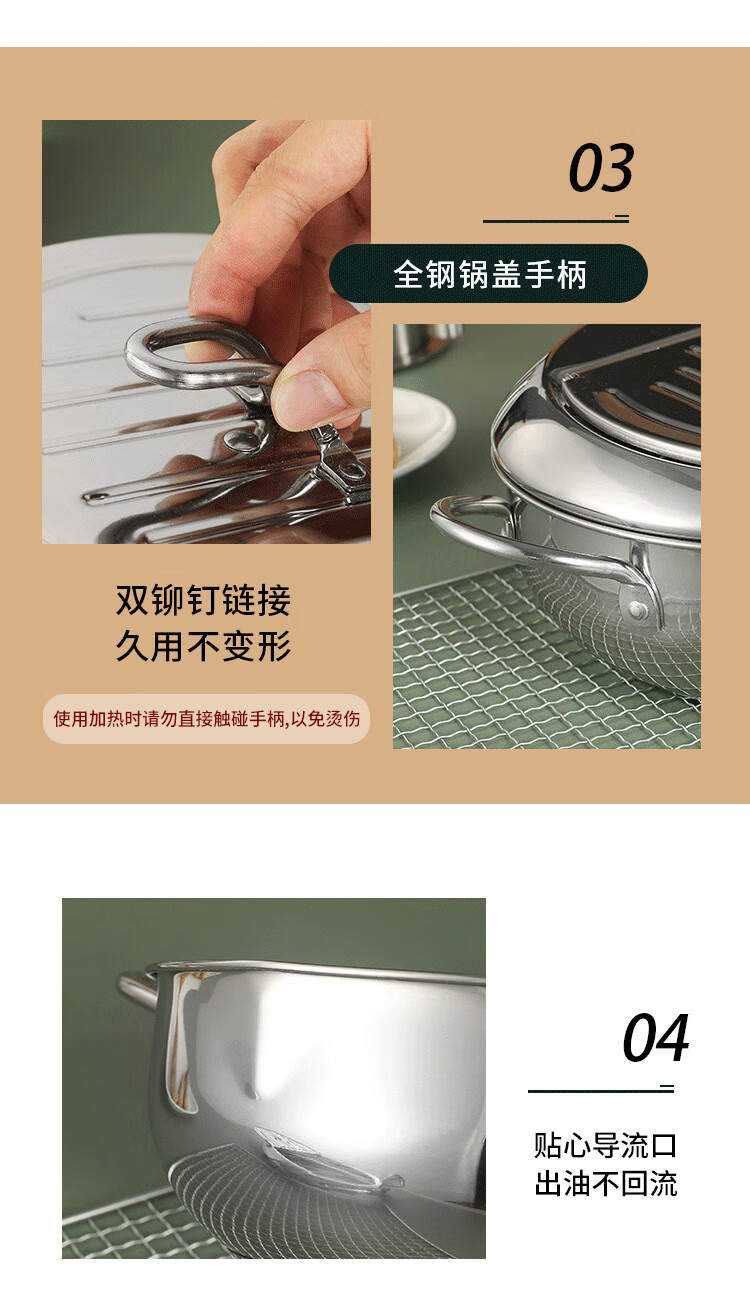 美厨(maxcook)油炸锅汤锅20cm 304不锈钢控温汤锅平底锅 电磁炉明火通用MCT6945 油炸锅/个
