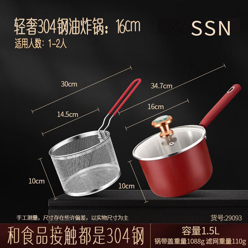 厨具  > 烹饪锅具  > 油炸锅  >  SSN  >  SSN304不锈钢油炸锅家用炸丸子神器深型炸锅小型油炸专用锅炸炸壶 29093/个