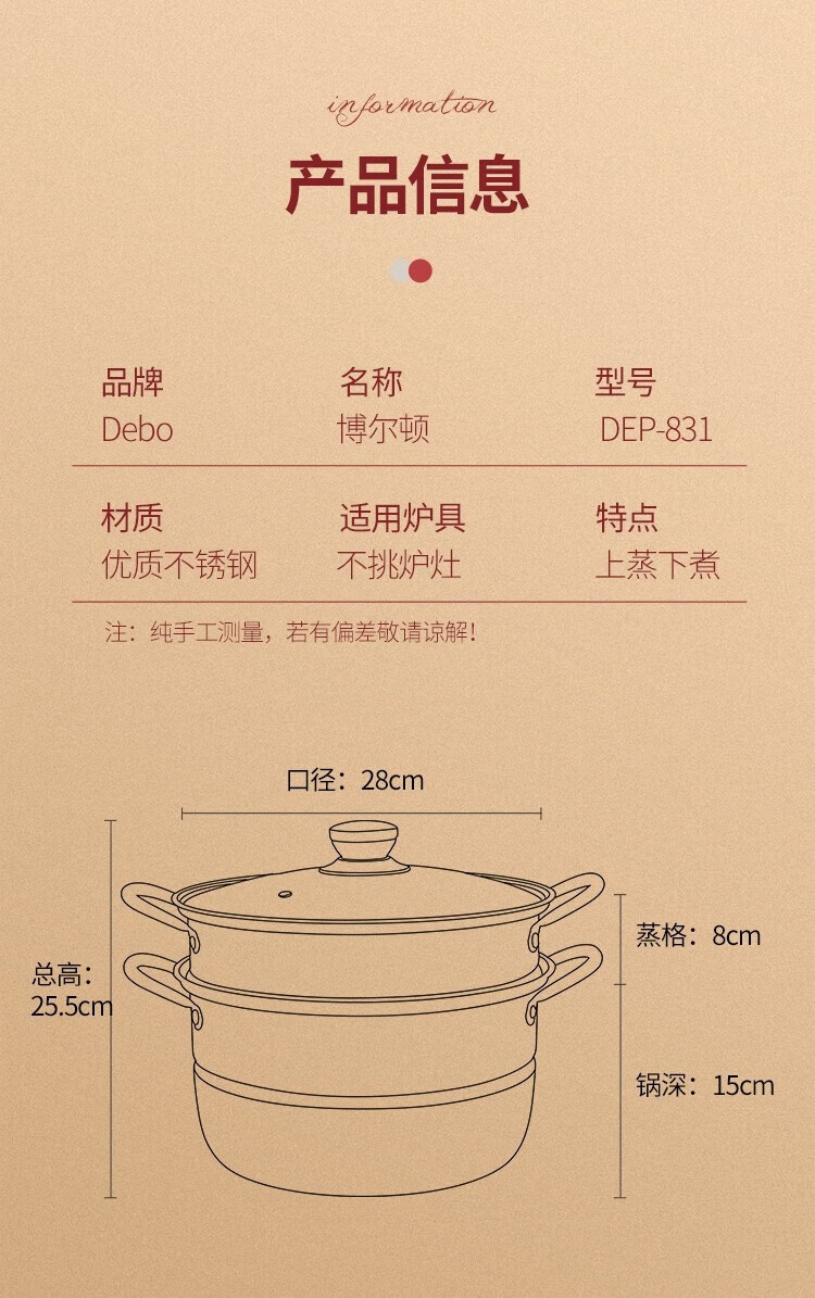 商品名称: Debo德铂博尔顿蒸锅DEP-831颜色随机 DEP-831/个