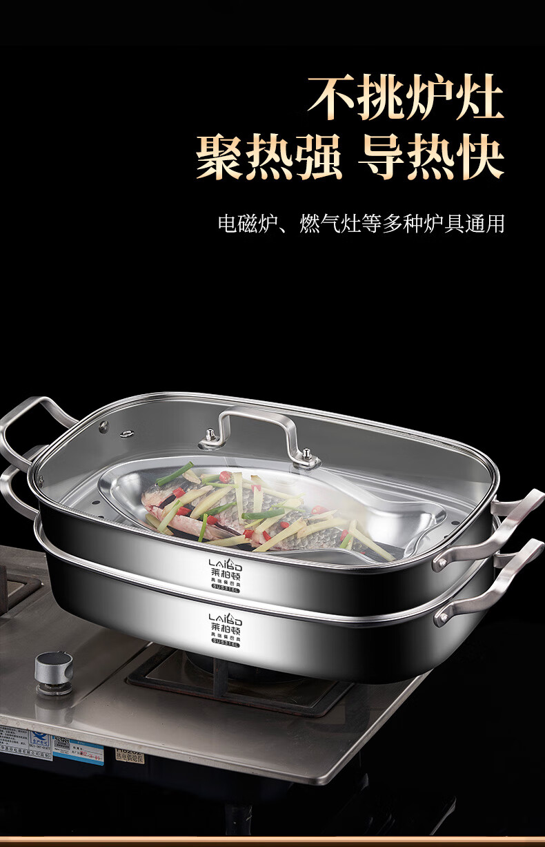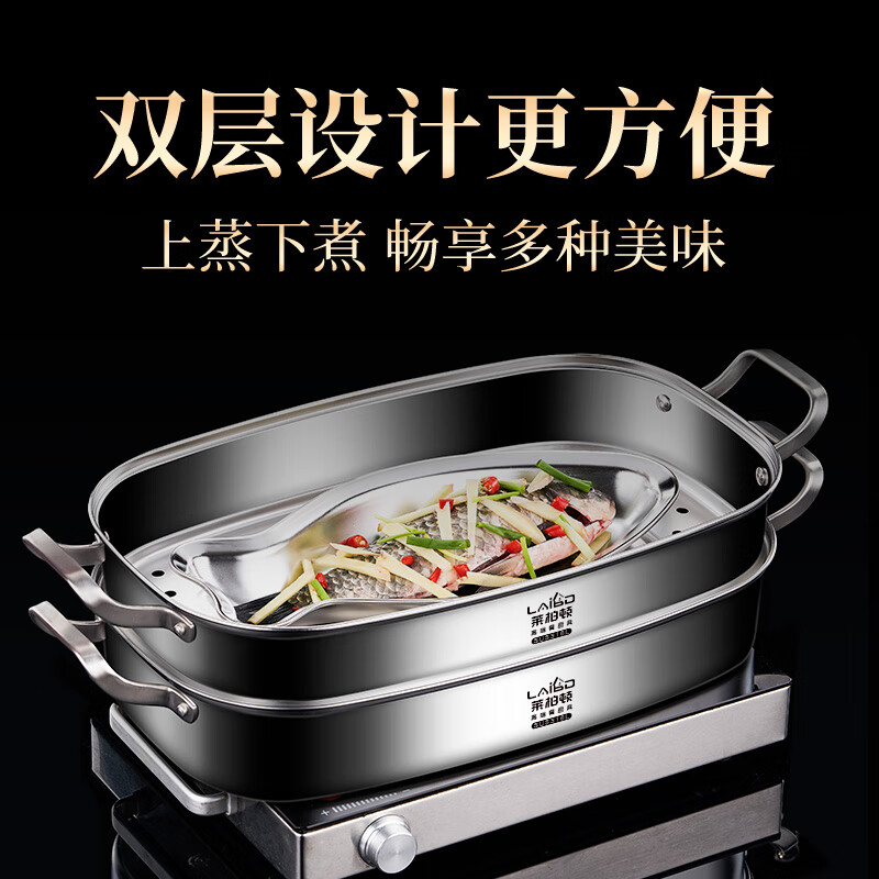 商品名称: 莱柏顿316L不锈钢蒸鱼锅家用大蒸锅大号双层海鲜锅椭圆形蒸鱼蒸锅两层 316L椭圆形蒸鱼锅2层/只