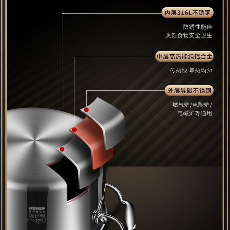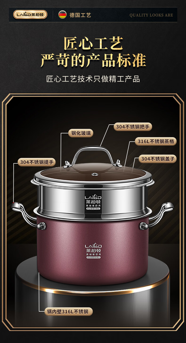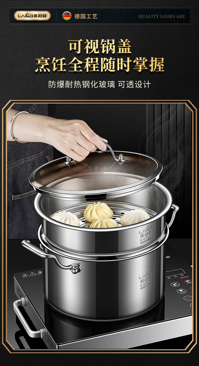 • 商品名称:莱柏顿316L不锈钢蒸锅双层加厚汤锅带蒸笼电磁炉炖煮锅煲汤锅26cm可定制 蒸锅26cm-红色/个
