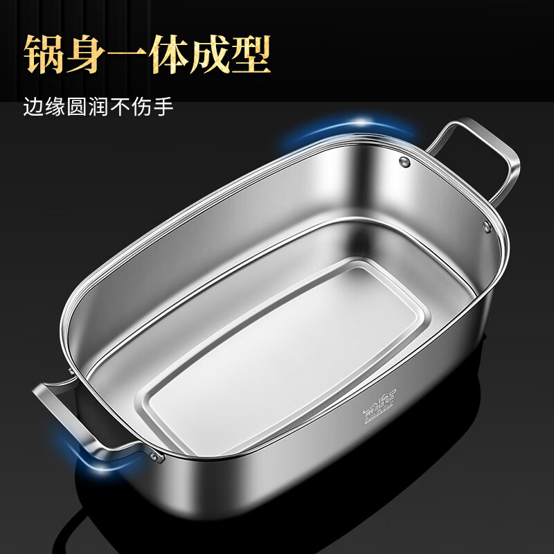 厨具  > 烹饪锅具  > 蒸锅  >  莱柏顿  >  莱柏顿316L不锈钢蒸锅长方形大容量汤锅加深加厚海鲜锅椭圆形蒸鱼可定制 蒸锅单层【316L不锈钢】/个