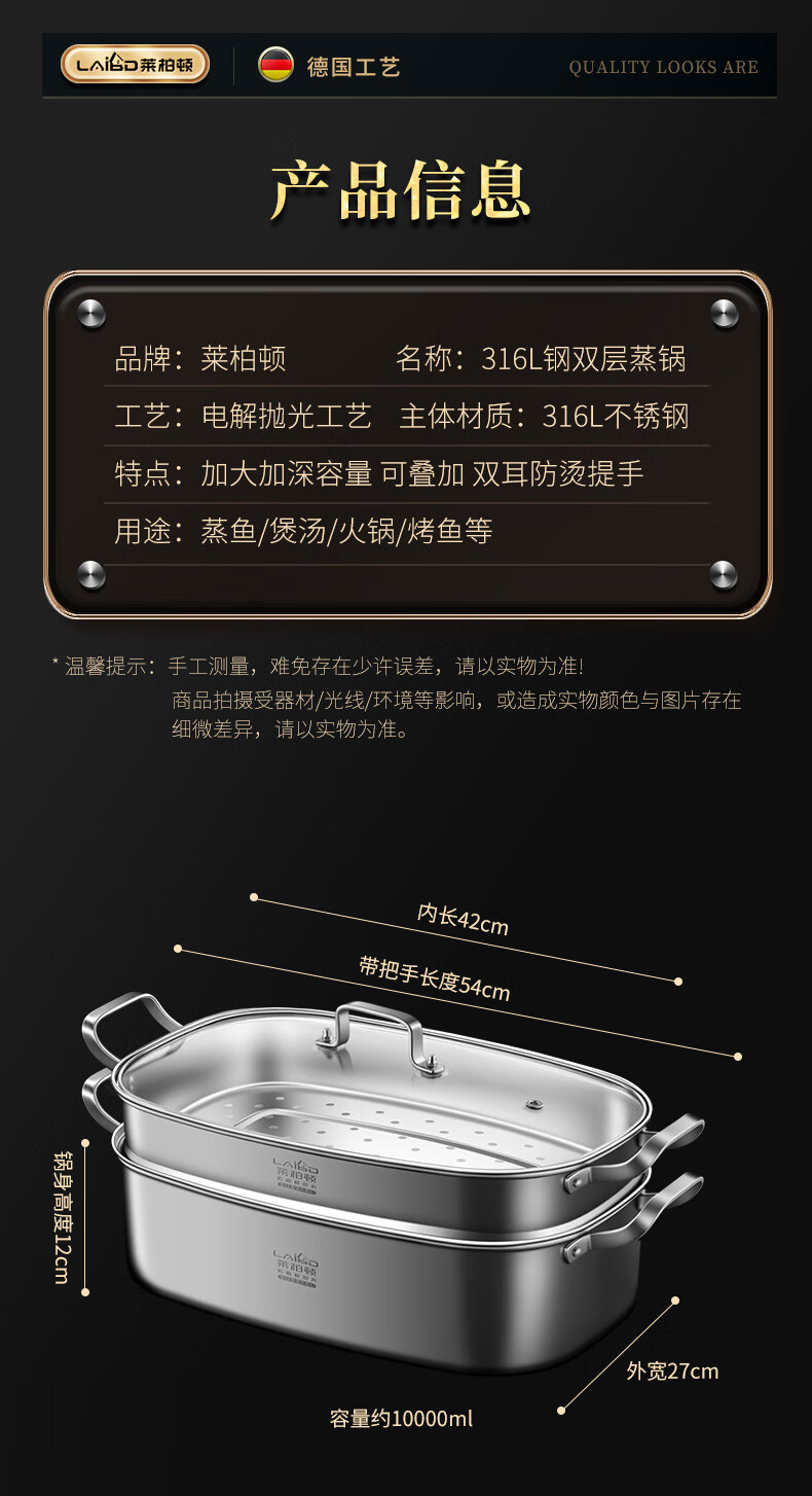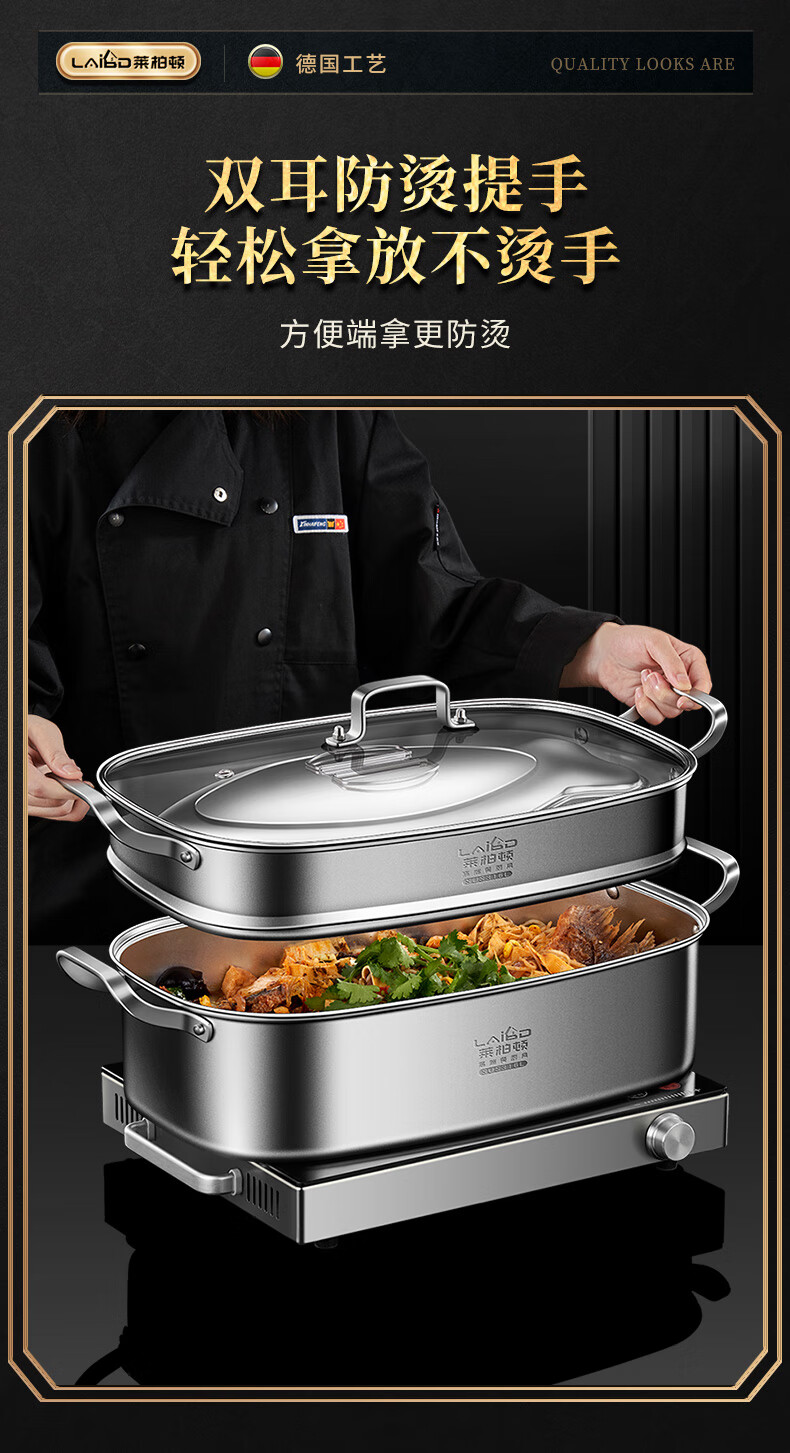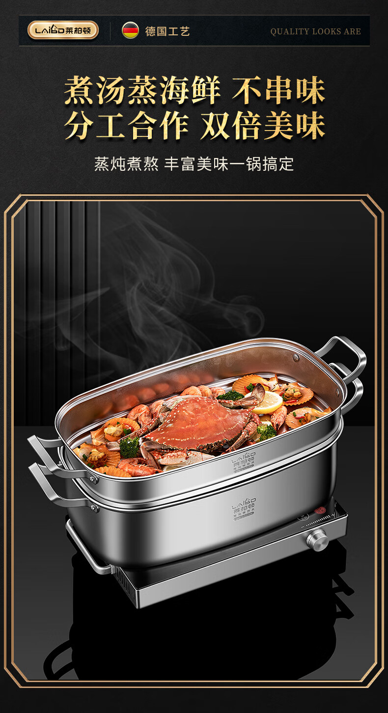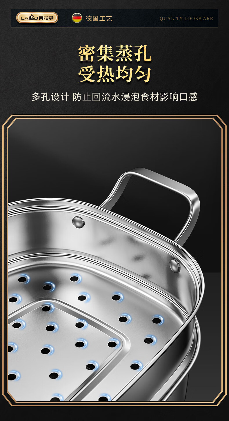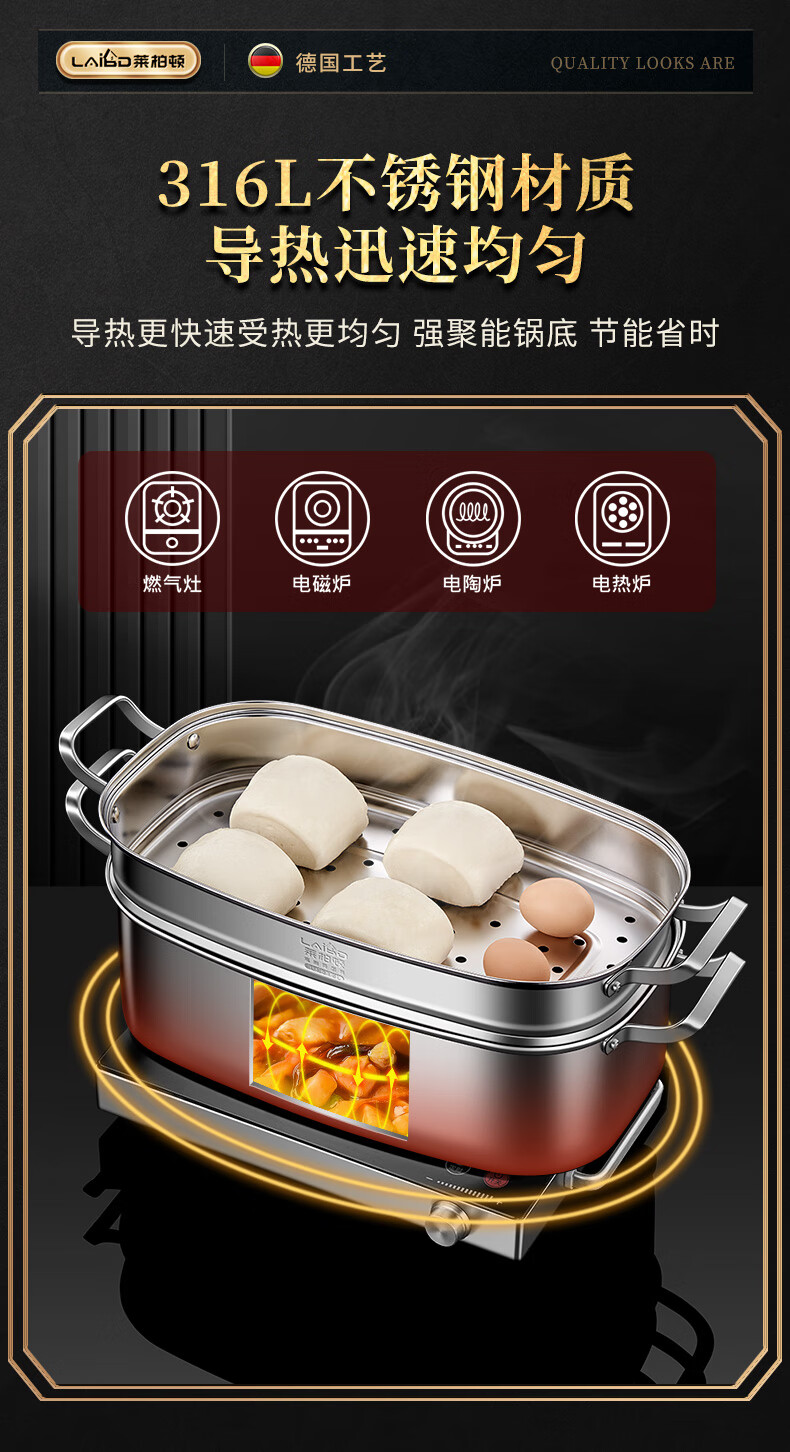 • 商品名称:莱柏顿316L不锈钢蒸锅长方形大容量汤锅加深加厚海鲜锅椭圆形蒸鱼可定制 蒸锅单层【316L不锈钢】/个