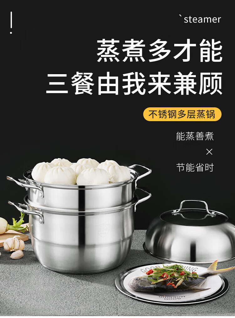 厨具  > 烹饪锅具  > 蒸锅  >  熙意  >  熙意 304不锈钢可定制加厚蒸笼电磁炉燃气灶专用汤锅定制 双层36cm 双层36cm/个