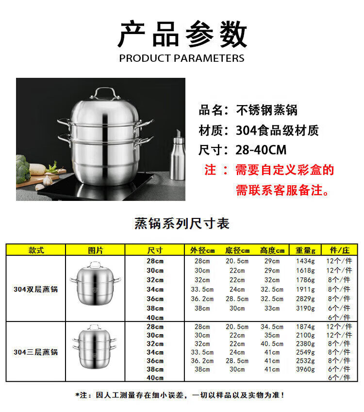 • 商品名称:熙意 304不锈钢可定制加厚蒸笼电磁炉燃气灶专用汤锅定制 双层36cm 双层36cm/个
