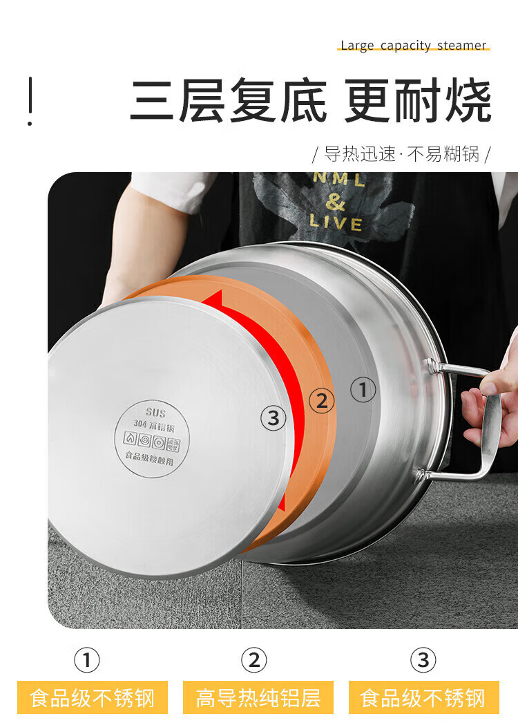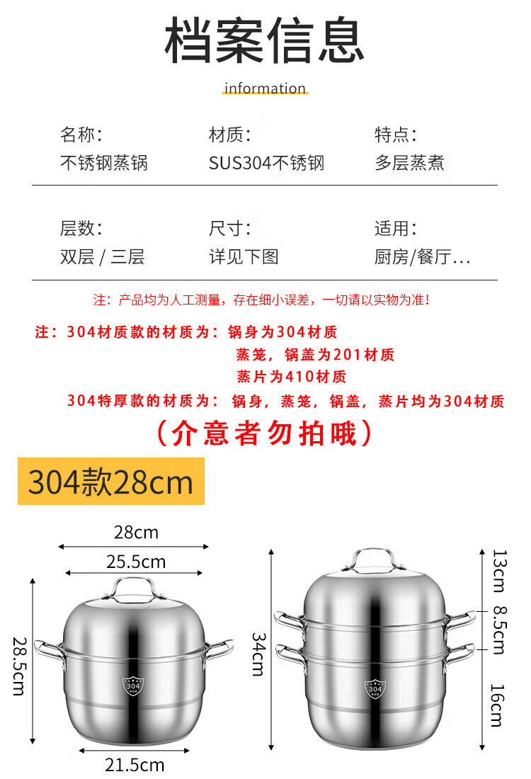 商品名称: 熙意 304不锈钢可定制加厚蒸笼电磁炉燃气灶专用汤锅定制 双层36cm 双层36cm/个