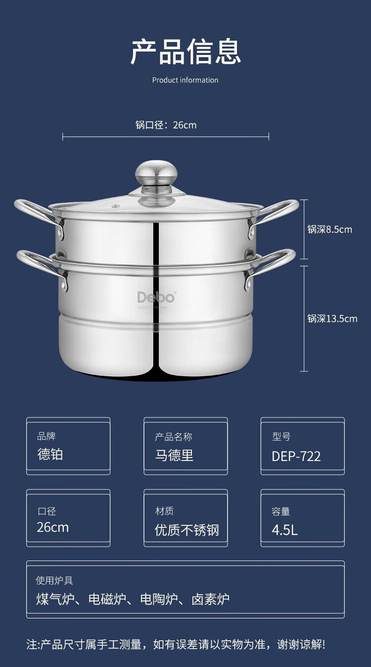 商品名称: Debo德铂马德里(蒸锅)DEP-722颜色随机 DEP-722/个