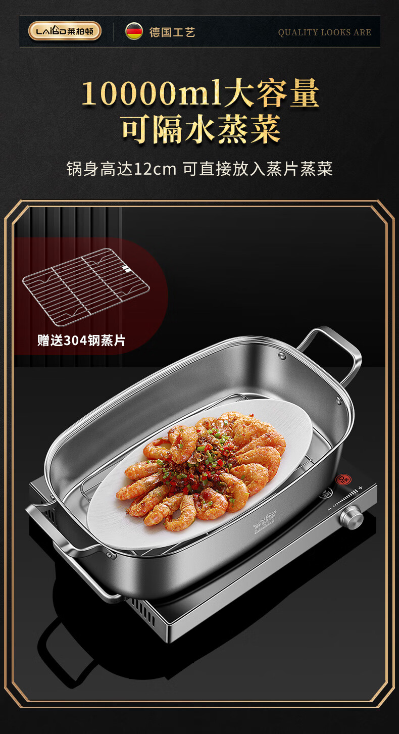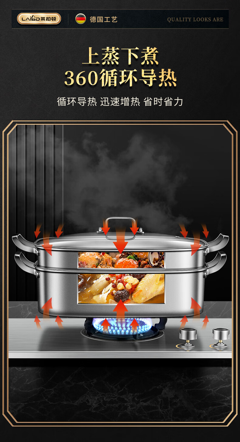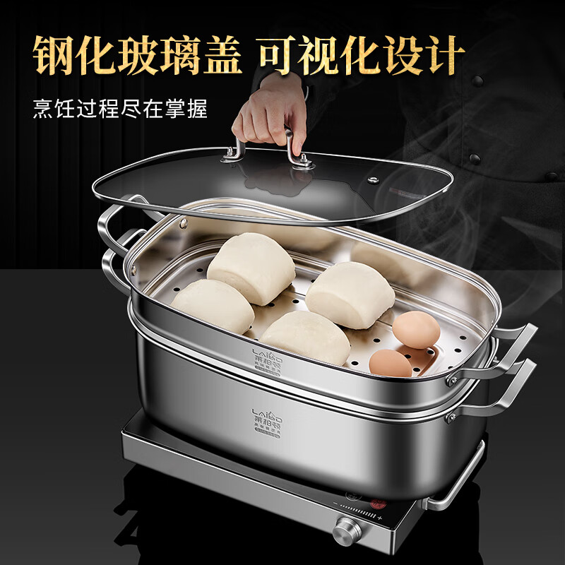 厨具  > 烹饪锅具  > 蒸锅  >  莱柏顿  >  莱柏顿316L不锈钢蒸锅长方形大蒸锅大号双层海鲜锅蒸笼馒头蒸鱼锅可定制 蒸锅四层【316L不锈钢】/个
