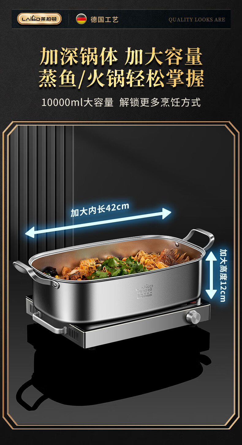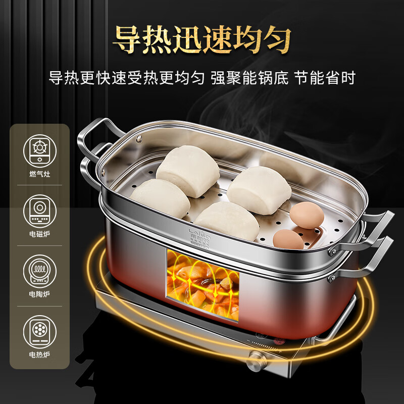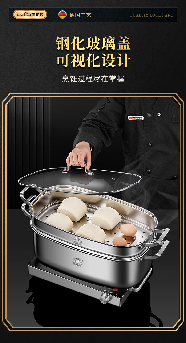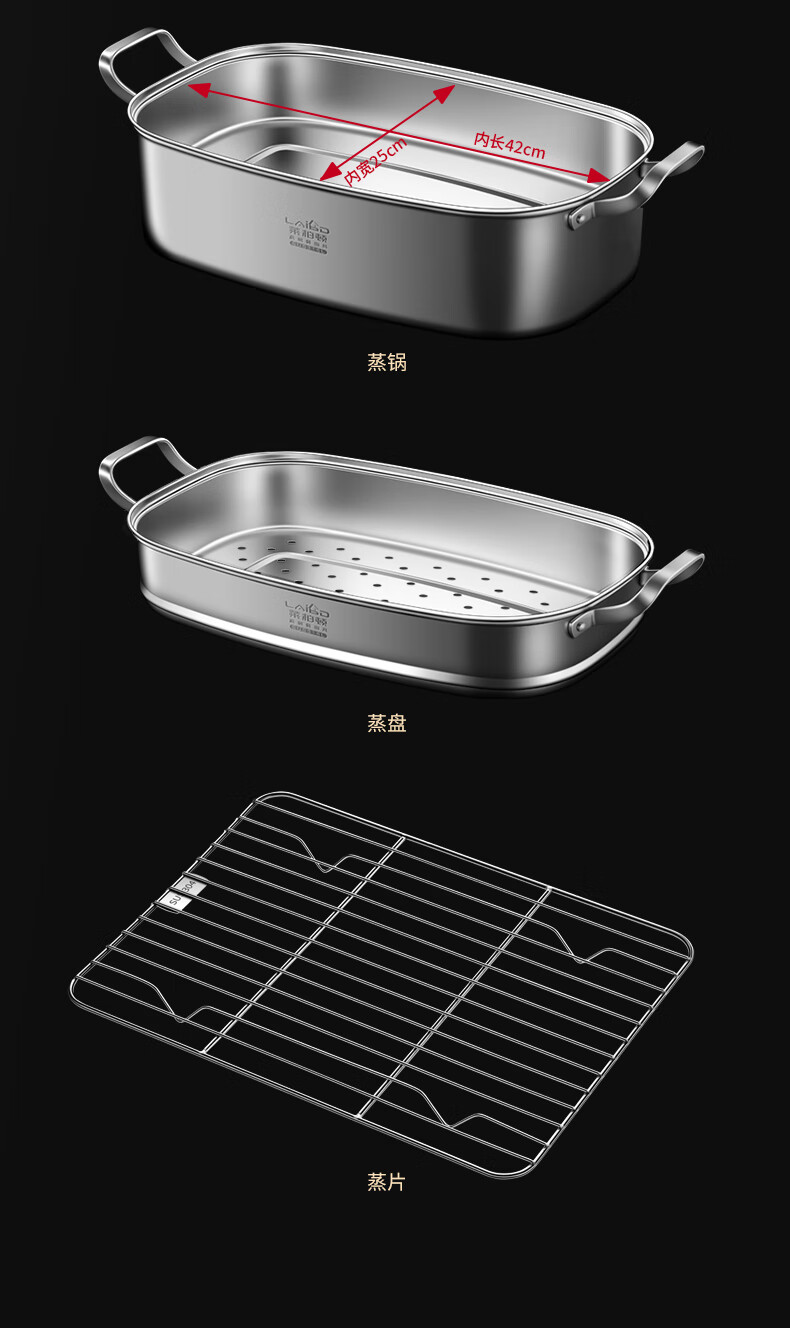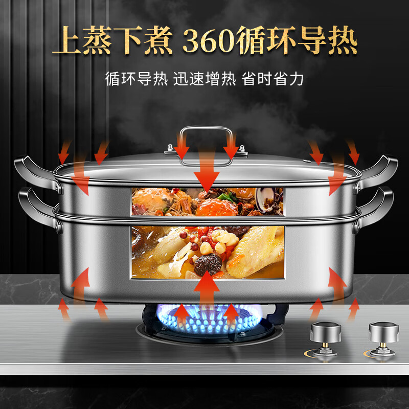 • 商品名称:莱柏顿316L不锈钢蒸锅长方形大蒸锅大号双层海鲜锅蒸笼馒头蒸鱼锅可定制 蒸锅双层【316L不锈钢】/个