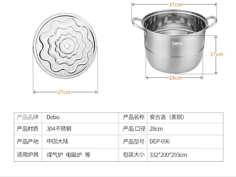 • 商品名称:Debo德铂安吉洛(蒸锅)DEP-696颜色随机 DEP-696/个