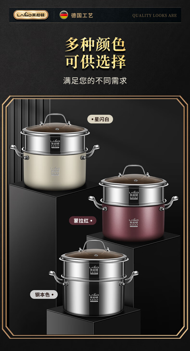 • 商品名称:莱柏顿316L不锈钢蒸锅双层加厚汤锅带蒸笼电磁炉炖煮锅煲汤锅20cm可定制 蒸锅20cm-红色/个
