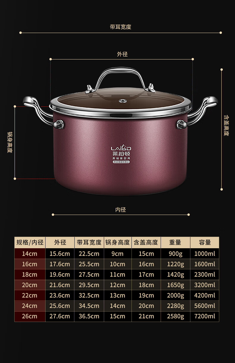 商品名称: 莱柏顿316L不锈钢蒸锅双层加厚汤锅带蒸笼电磁炉炖煮锅煲汤锅18cm可定制 蒸锅18cm-红色/个