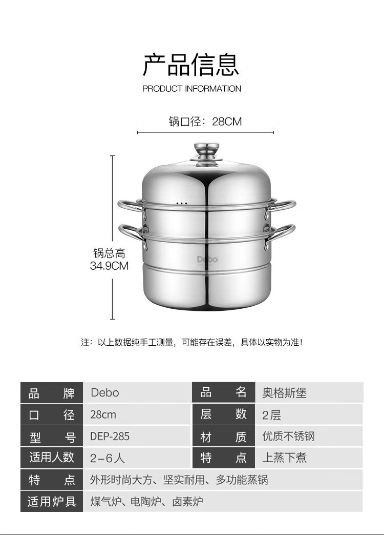 商品名称: Debo德铂奥格斯堡蒸锅 DEP-285颜色随机 DEP-285/个