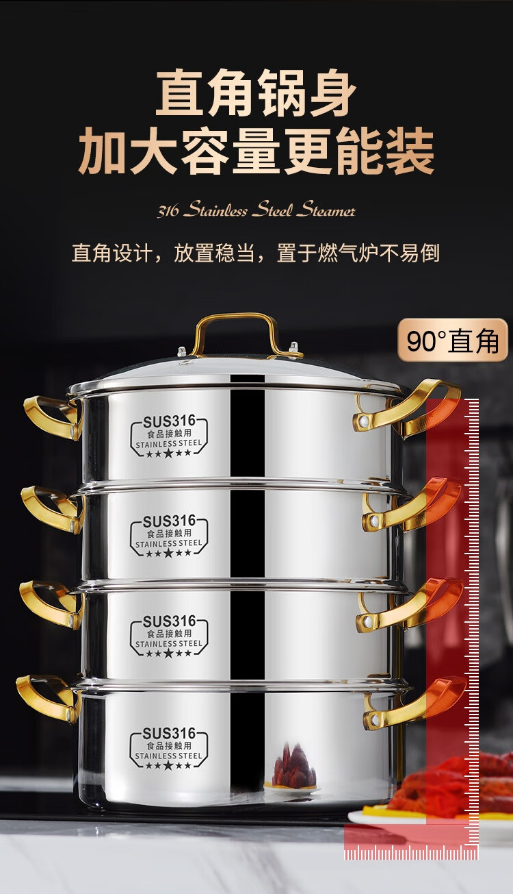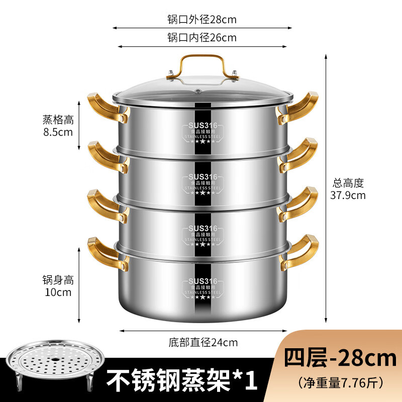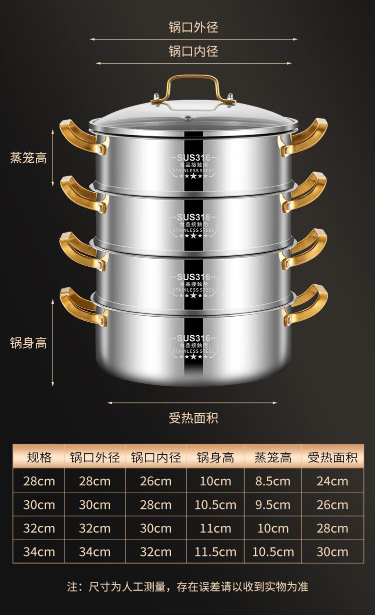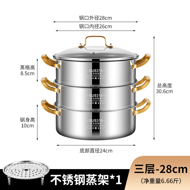 包装清单: 特厚316蒸锅双层32cm 送蒸架