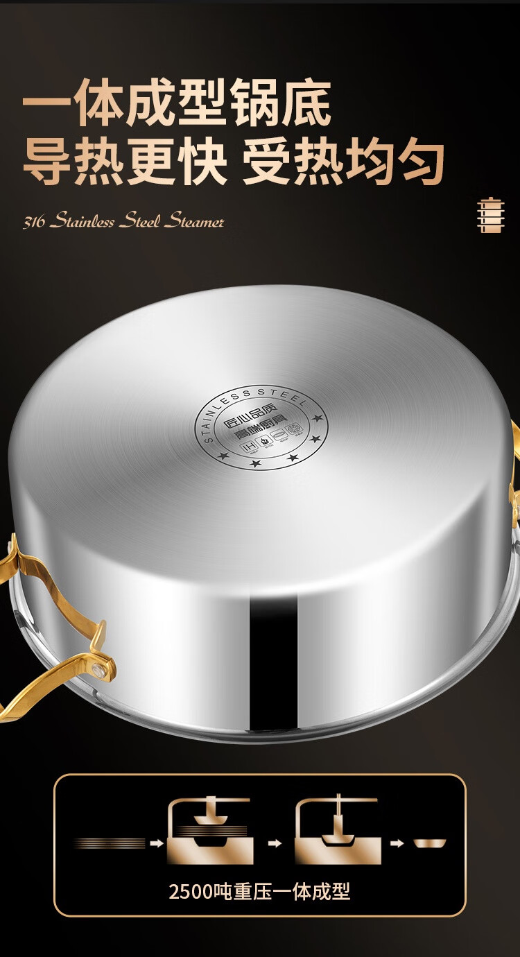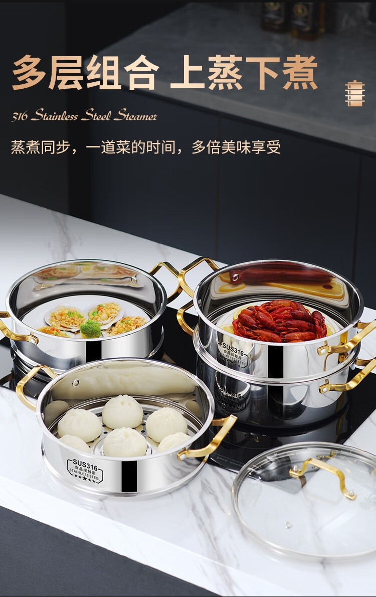 • 商品名称:智星辉316不锈钢特厚复合多层钢蒸锅电磁炉通用炖锅蒸笼蒸锅二层32cm 特厚316蒸锅双层32cm/套