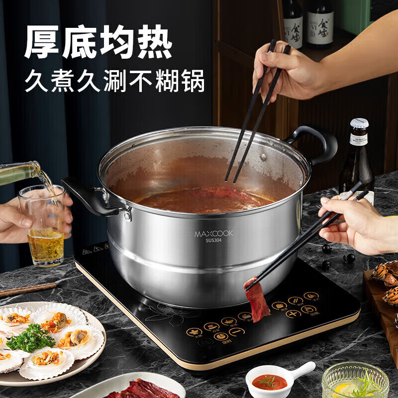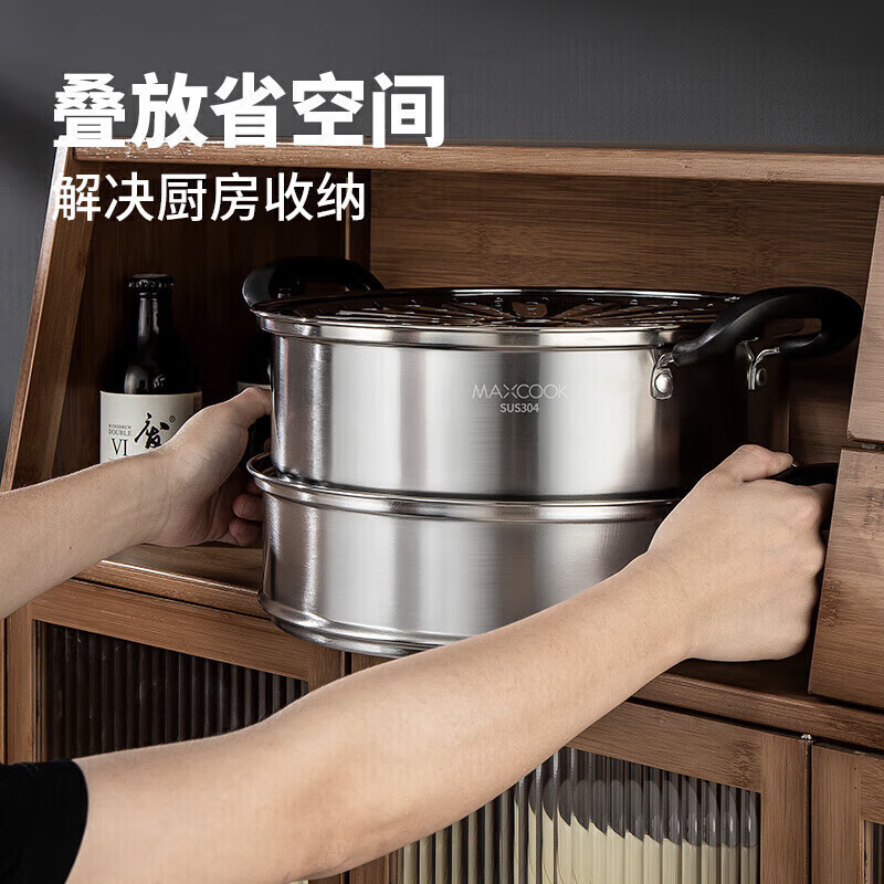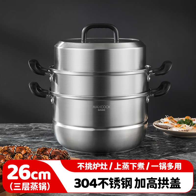 美厨(maxcook)304不锈钢蒸锅三层26cm 家用加厚复底蒸煮汤锅燃气灶通用 MCZ7610 304不锈钢蒸锅汤锅火锅/个