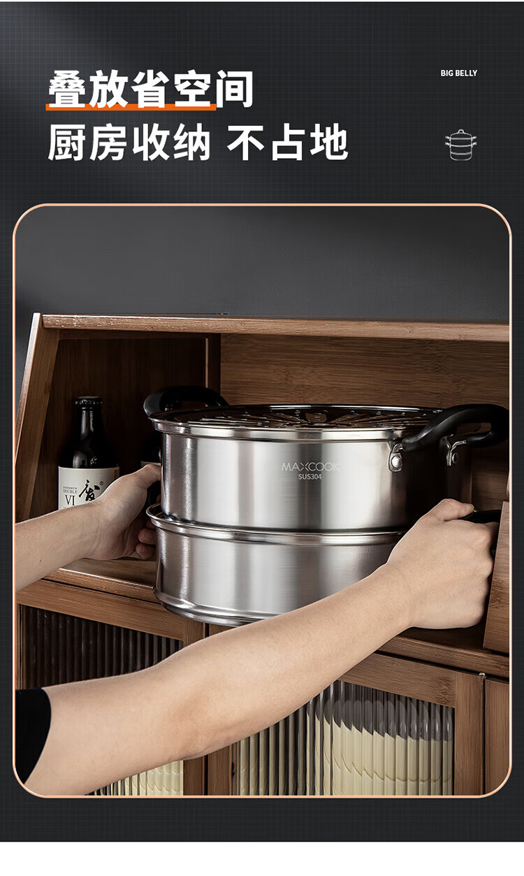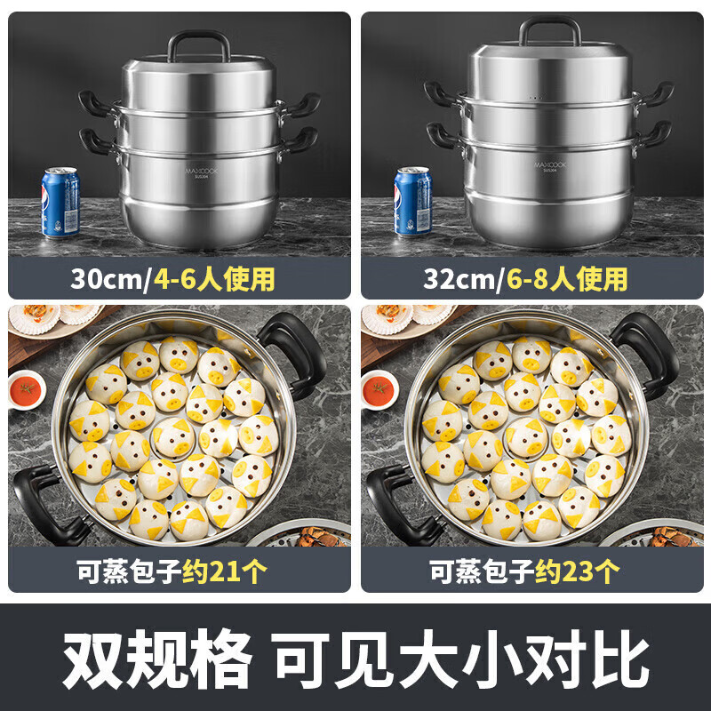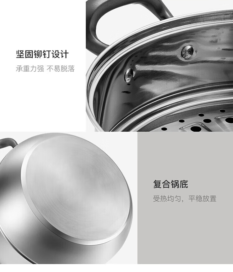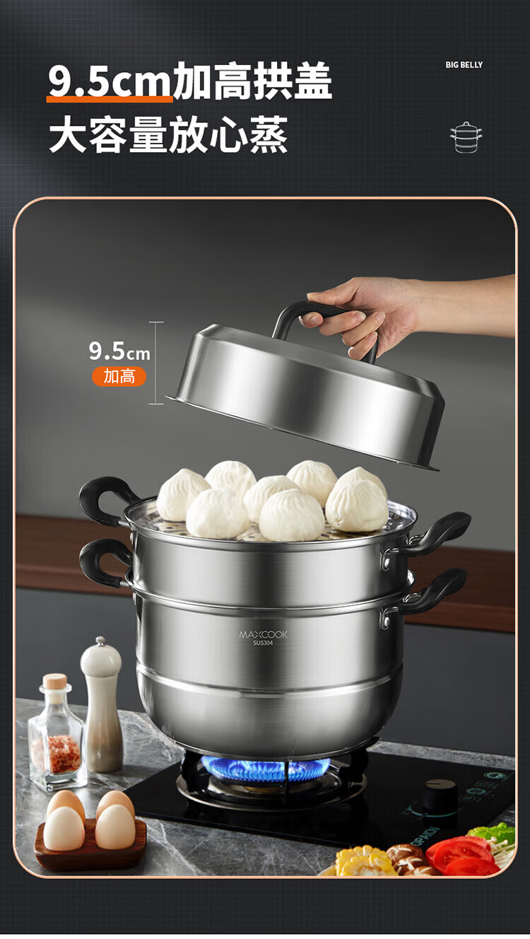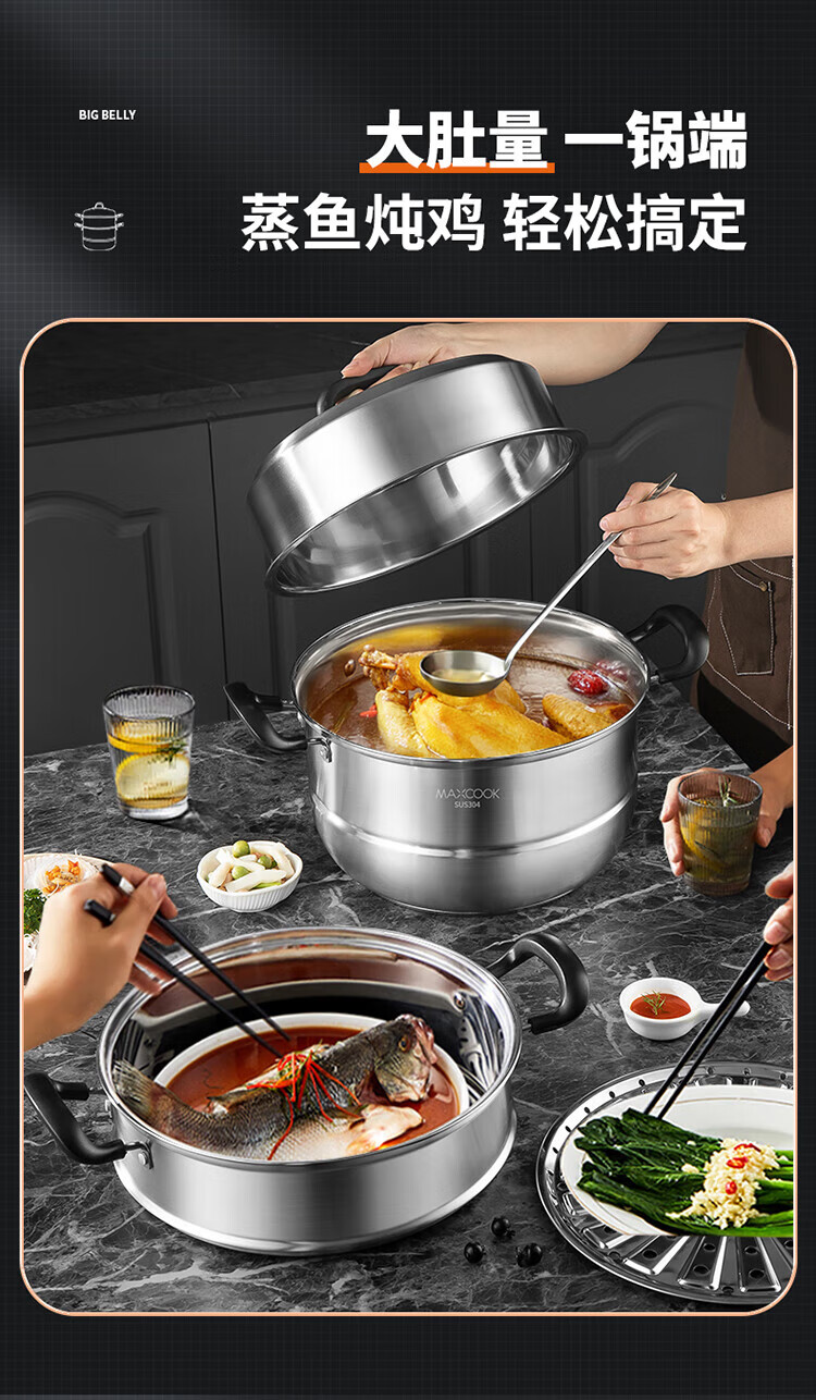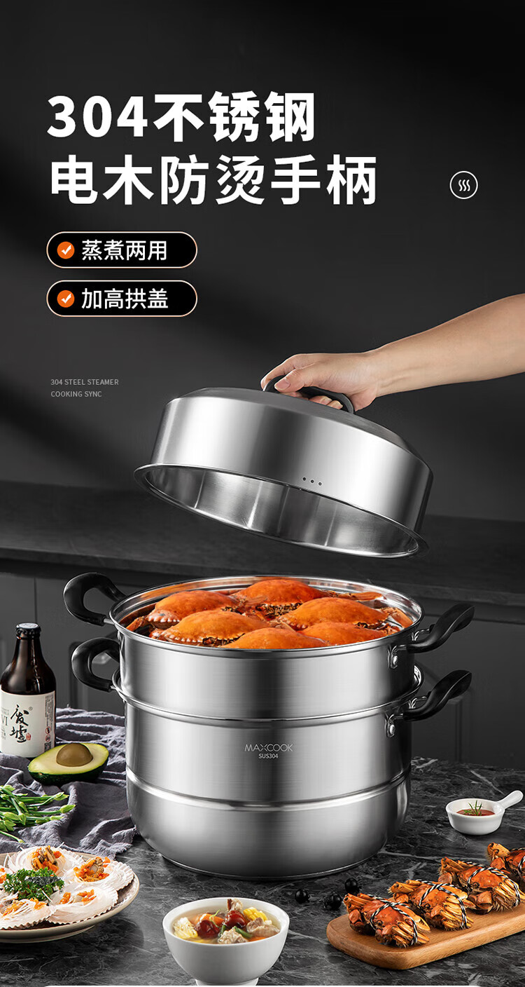 • 商品名称:美厨(maxcook)304不锈钢蒸锅三层26cm 家用加厚复底蒸煮汤锅燃气灶通用 MCZ7610 304不锈钢蒸锅汤锅火锅/个