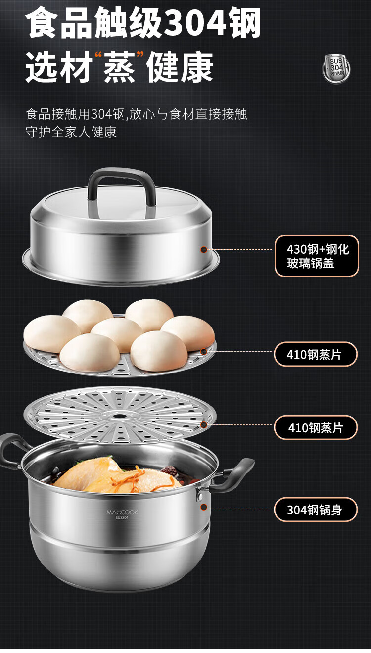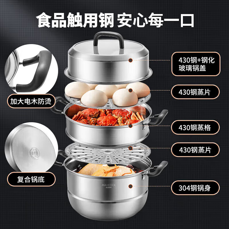 商品名称: 美厨(maxcook)304不锈钢蒸锅三层26cm 家用加厚复底蒸煮汤锅燃气灶通用 MCZ7610 304不锈钢蒸锅汤锅火锅/个