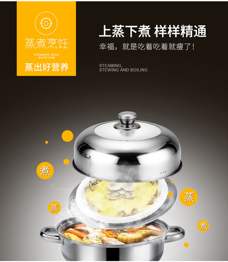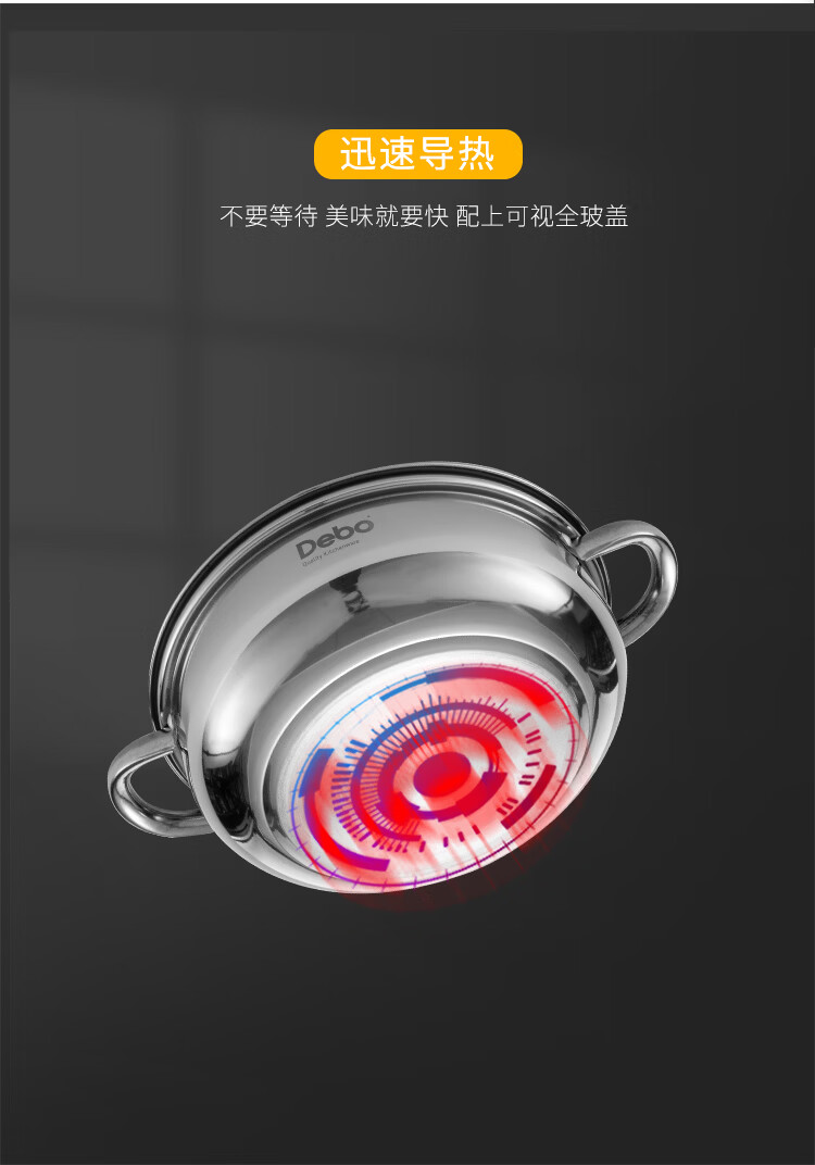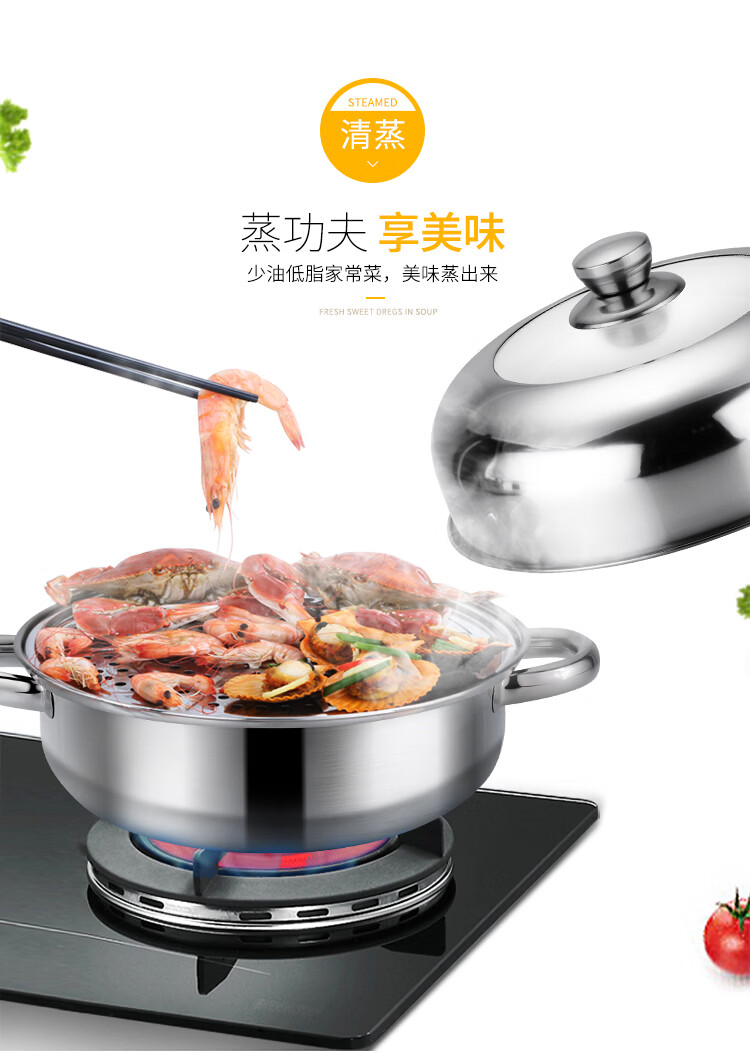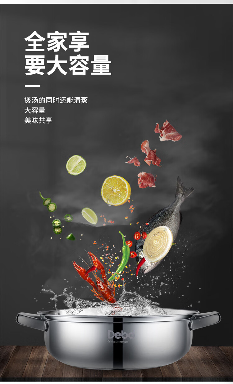 商品名称: Debo德铂汤锅不锈钢单层蒸锅蒸笼电磁炉两用锅艾琳诺26cm DEP-DS146/个