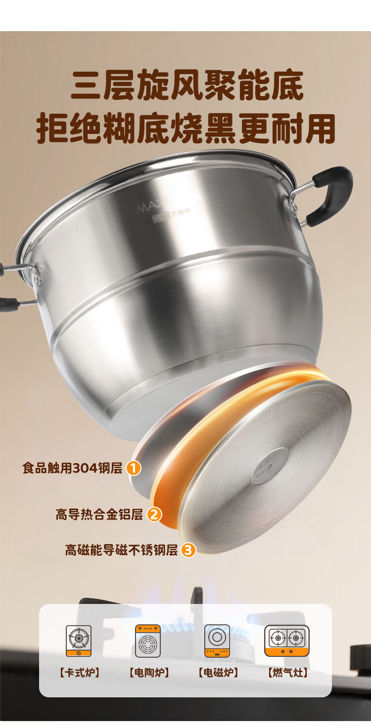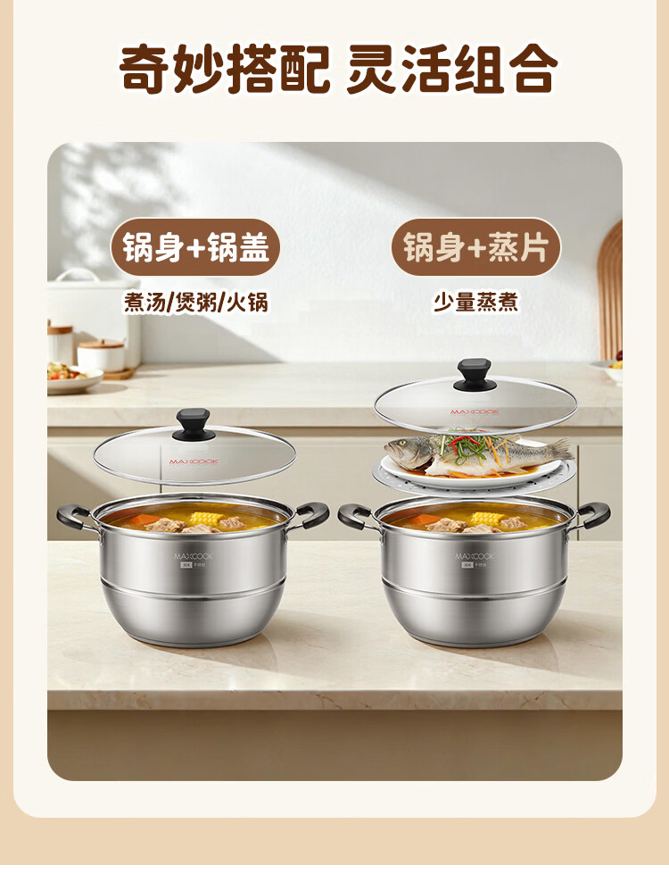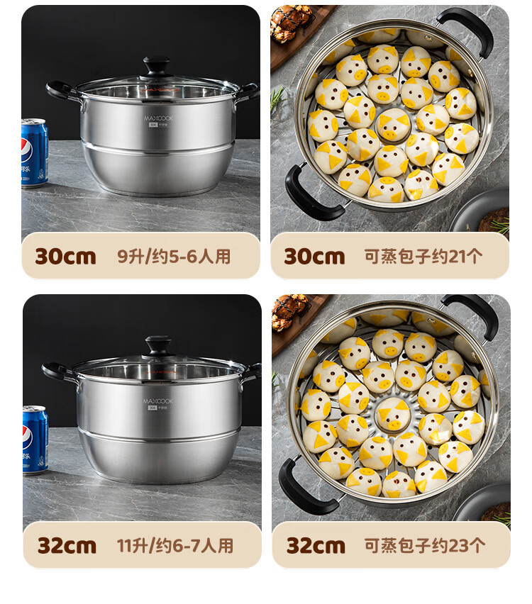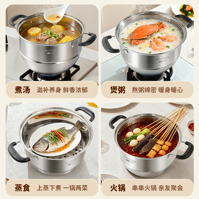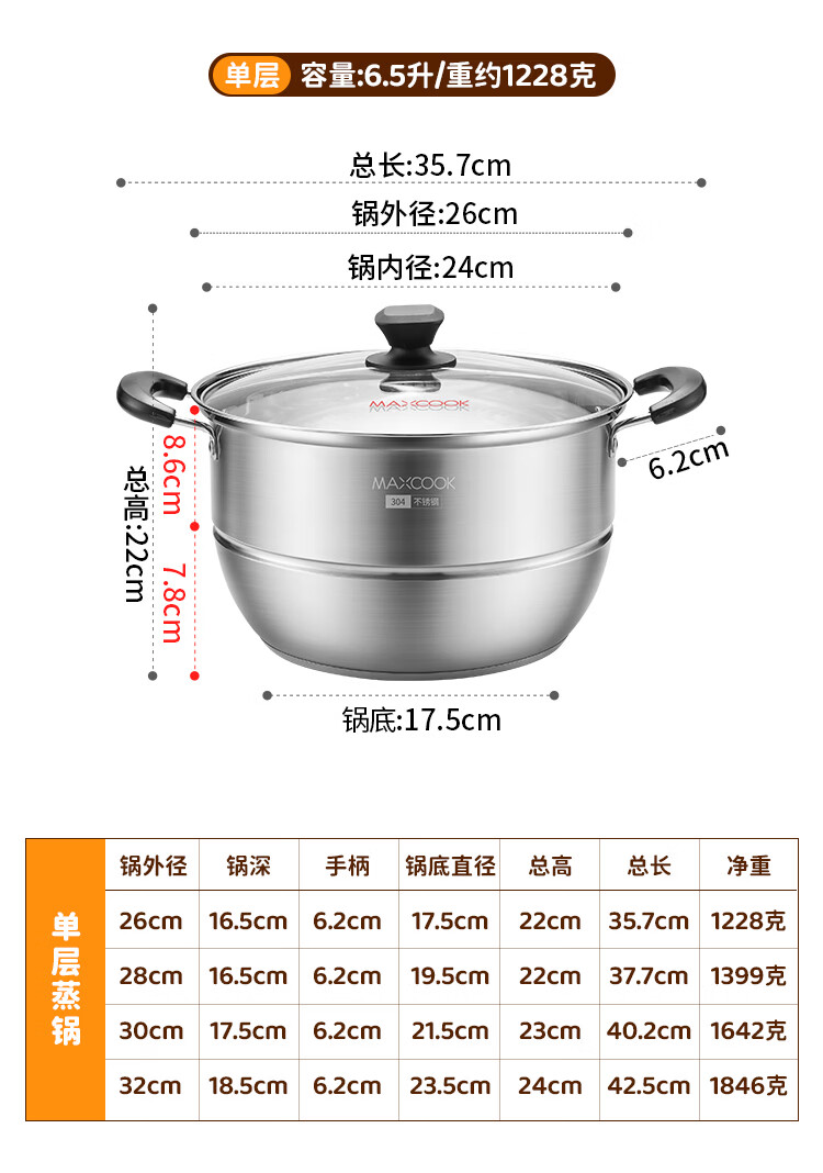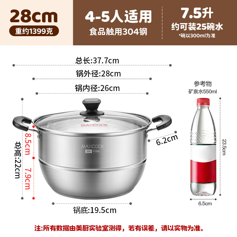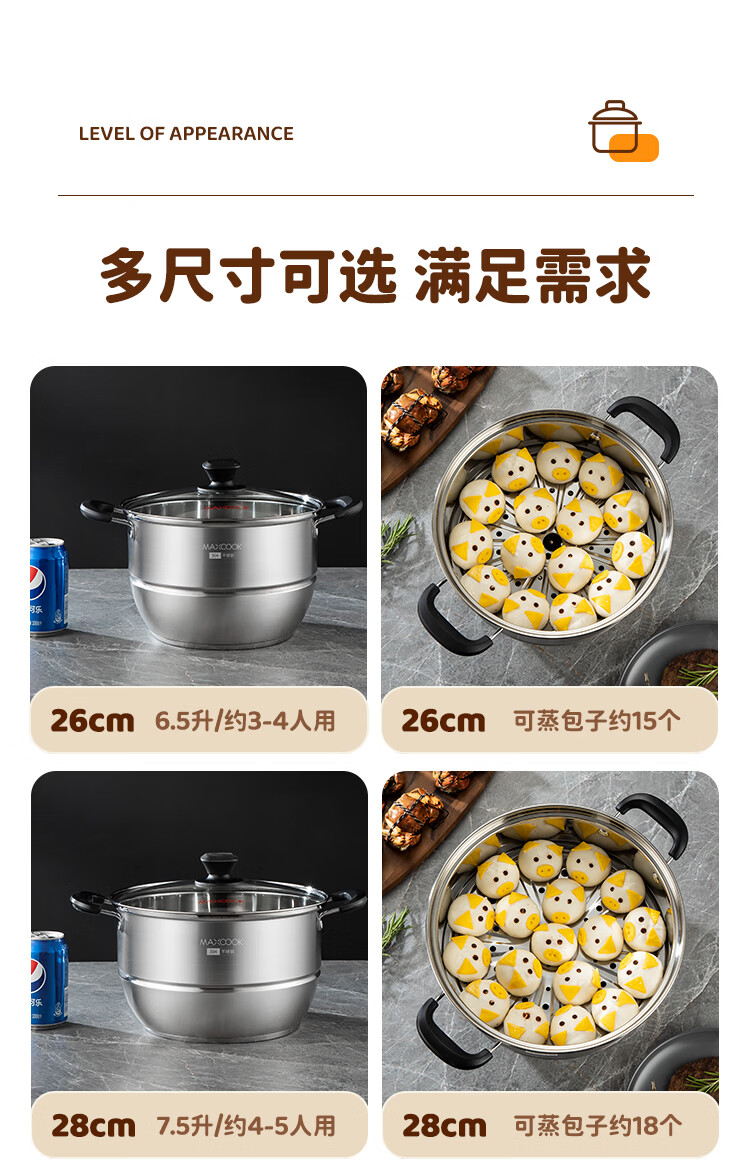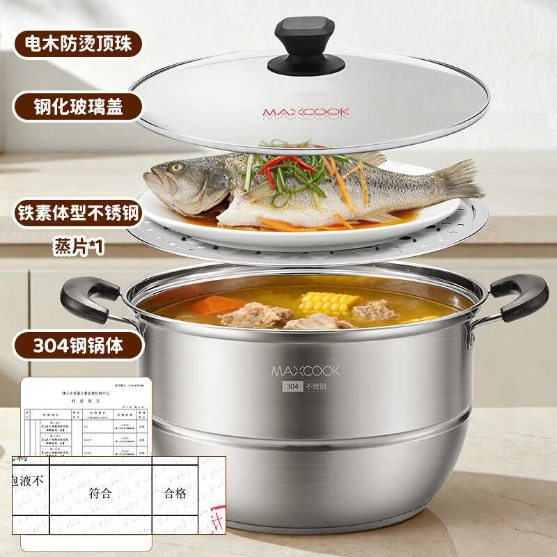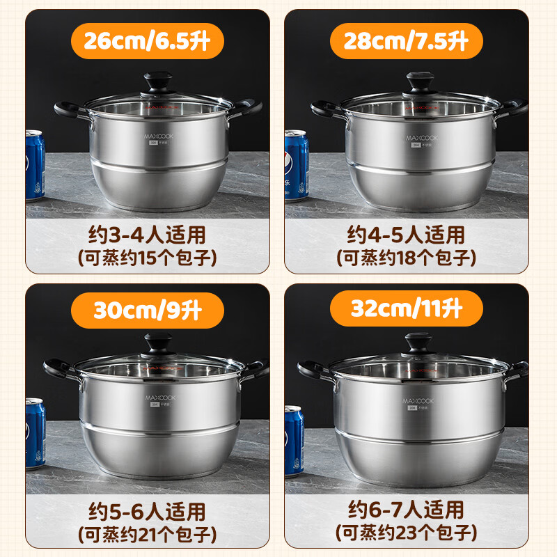 • 商品名称:美厨(MAXCOOK)蒸锅 304不锈钢28cm单层蒸锅 加厚复合底燃气灶炉电磁炉通用 304不锈钢单层蒸锅/个