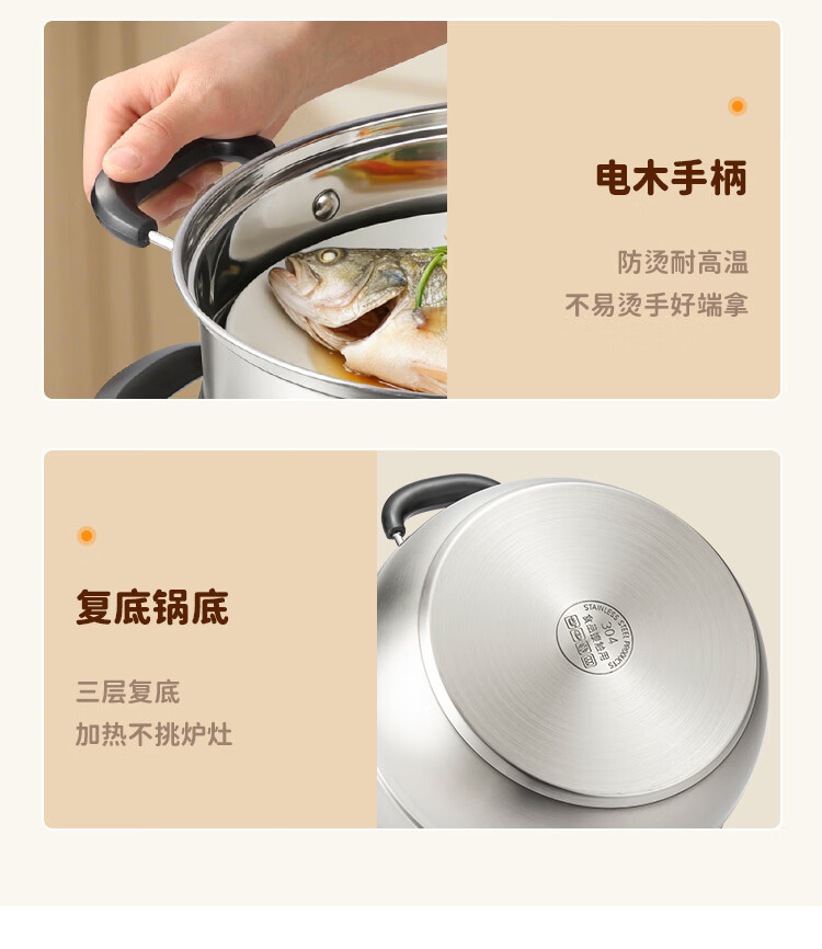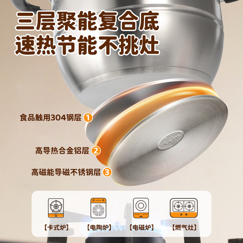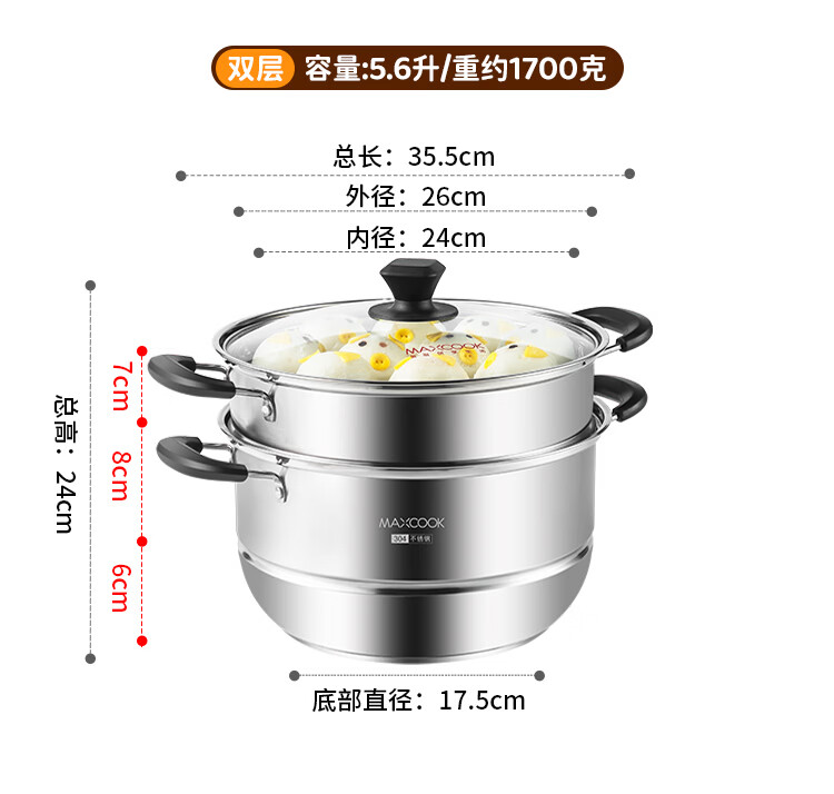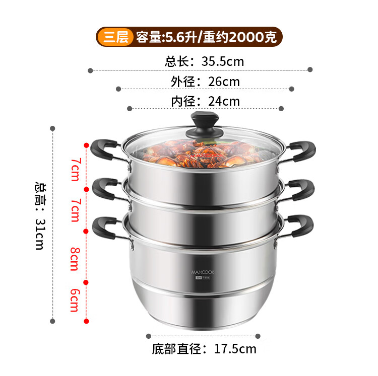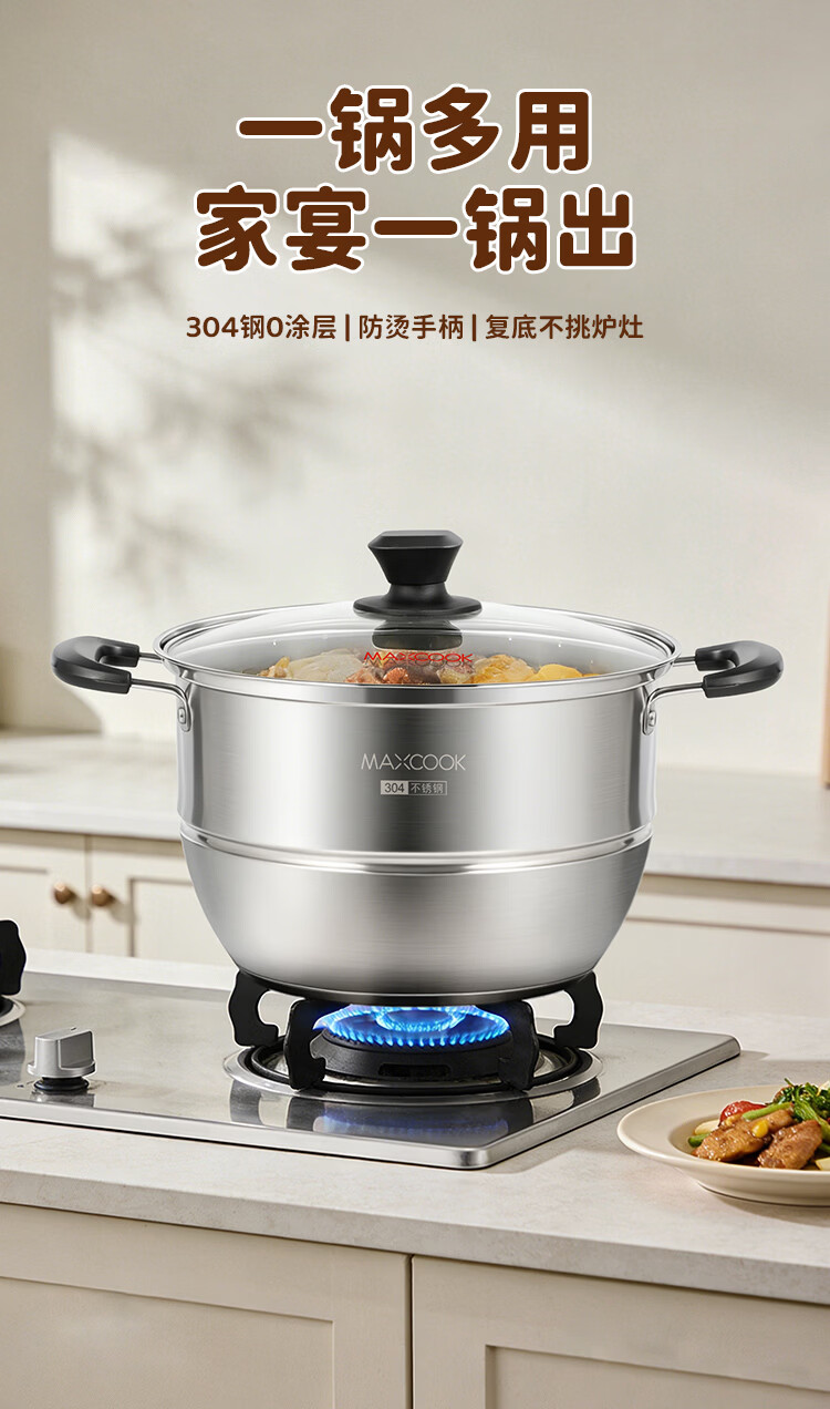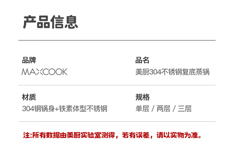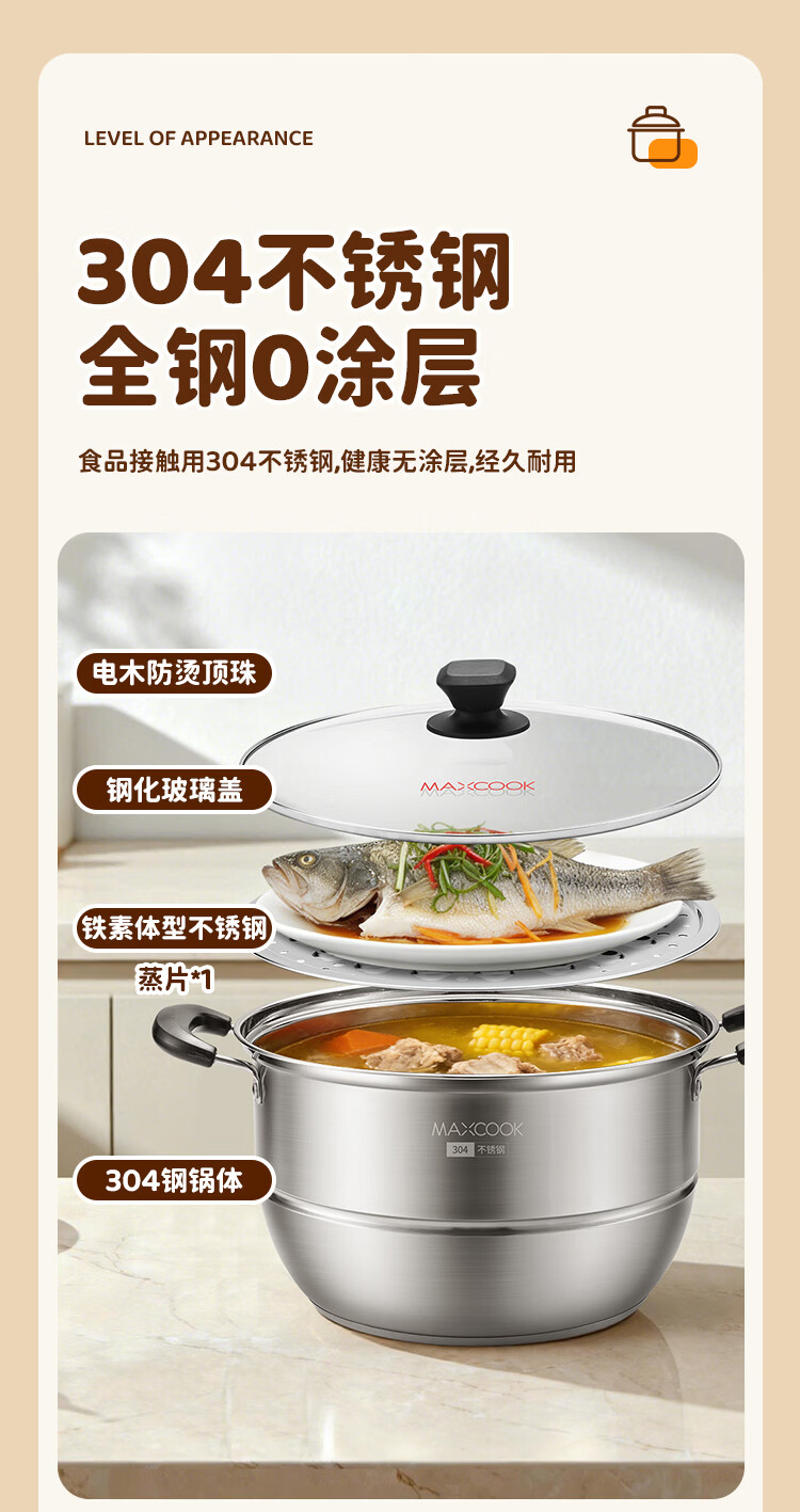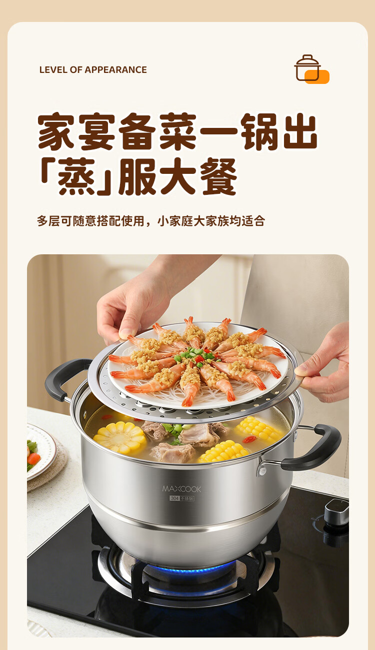 • 商品名称:美厨(MAXCOOK)蒸锅 304不锈钢28cm单层蒸锅 加厚复合底燃气灶炉电磁炉通用 304不锈钢单层蒸锅/个