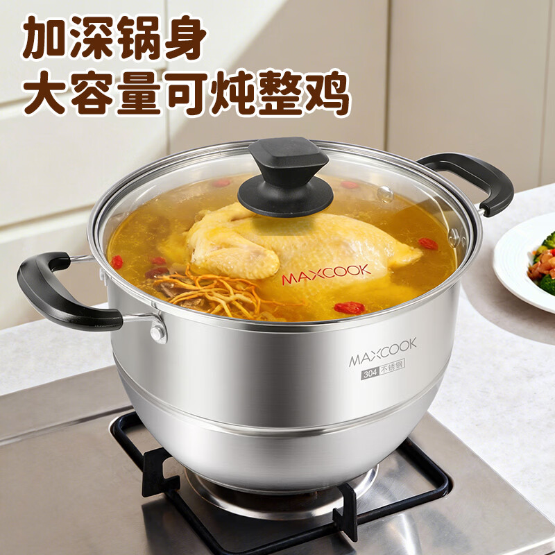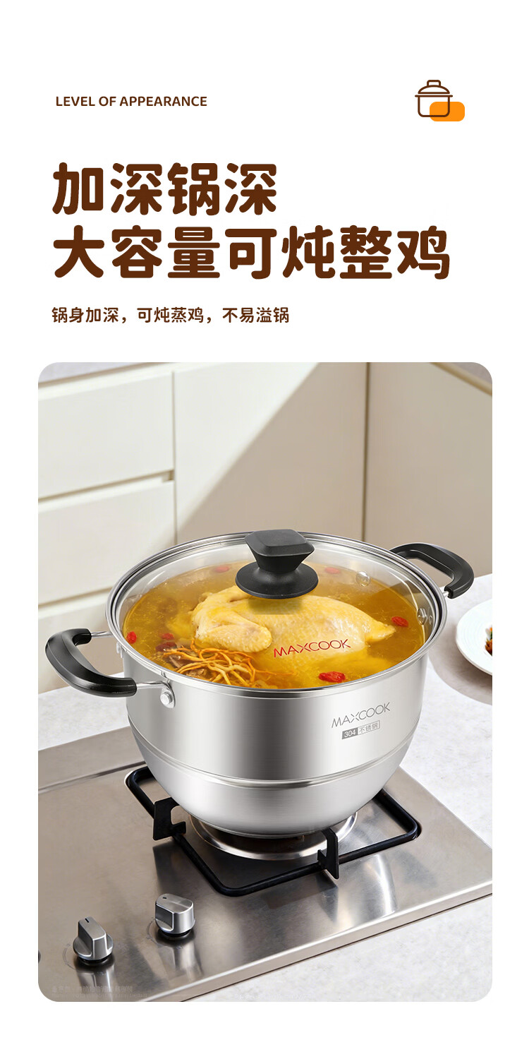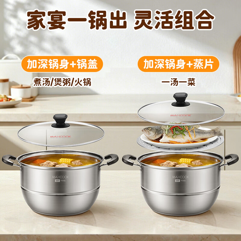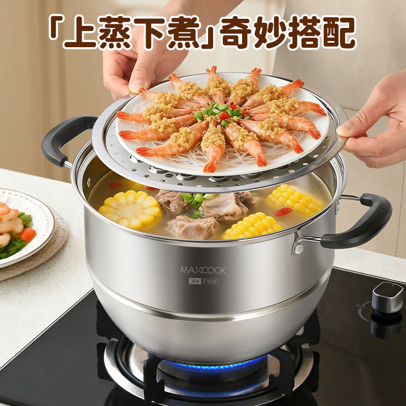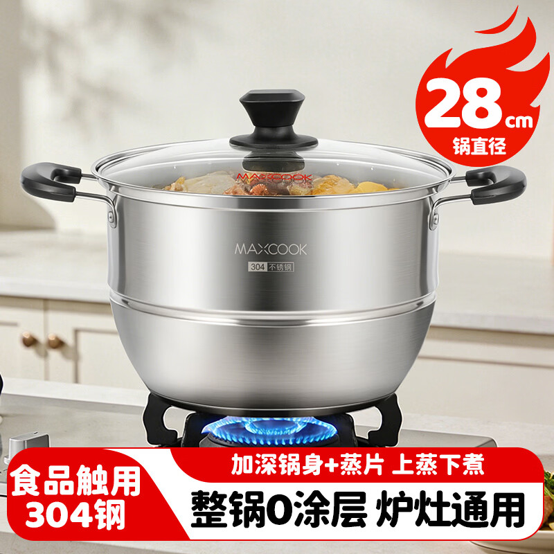 美厨(MAXCOOK)蒸锅 304不锈钢28cm单层蒸锅 加厚复合底燃气灶炉电磁炉通用 304不锈钢单层蒸锅/个