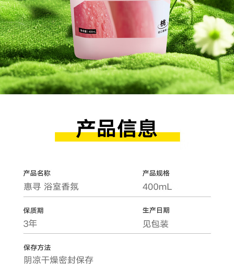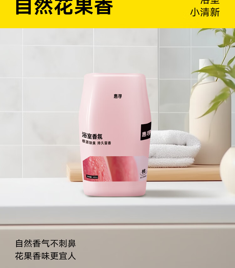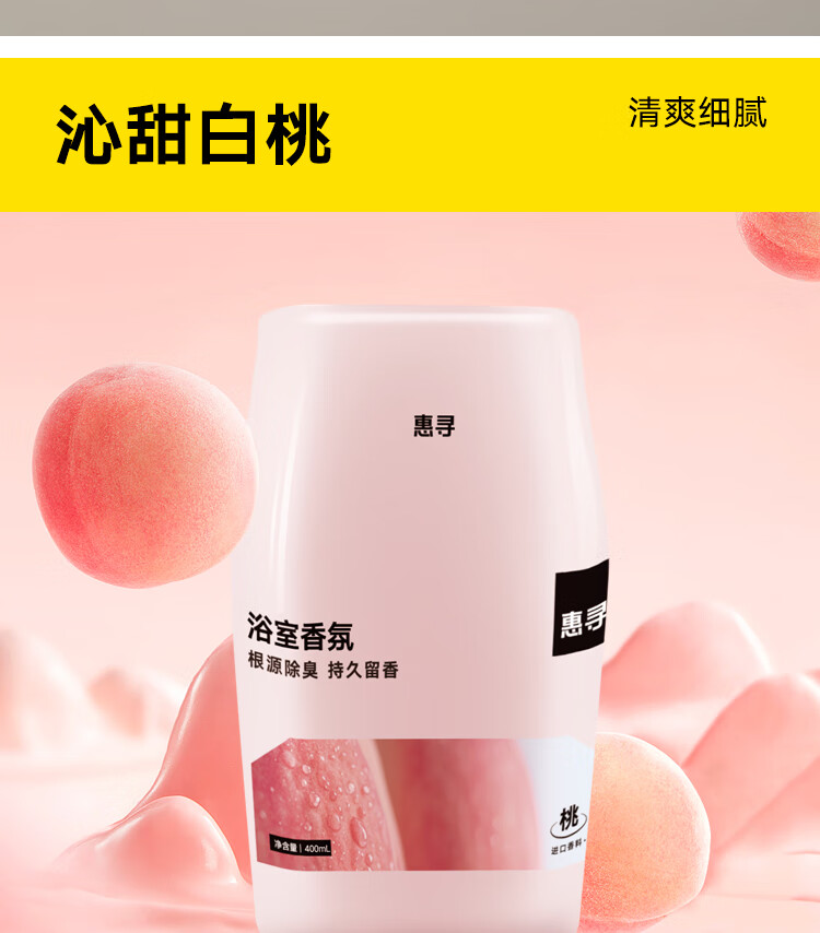 • 商品名称:惠寻 浴室香氛香薰空气清新剂 根源除臭消臭 进口香料 (白桃)400ml HXXX-08/盒