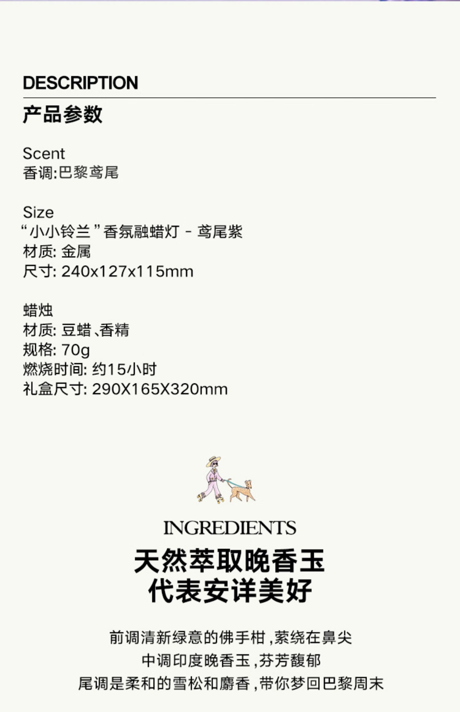 包装清单: 巴黎鸢尾小小铃兰灯香氛礼盒*1