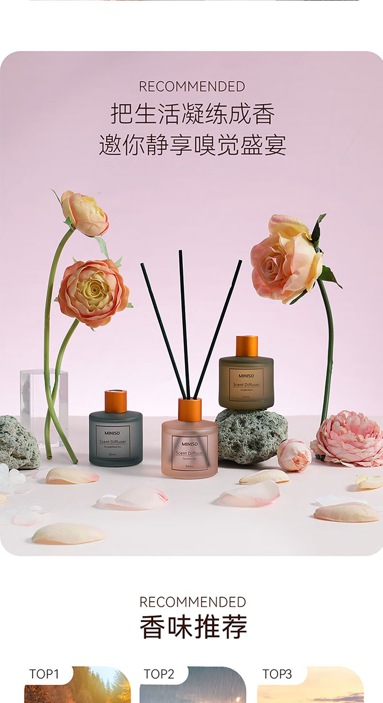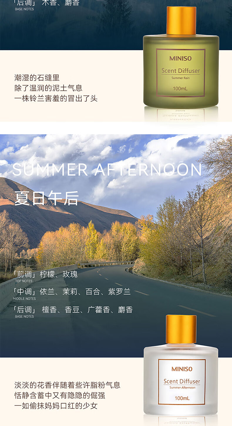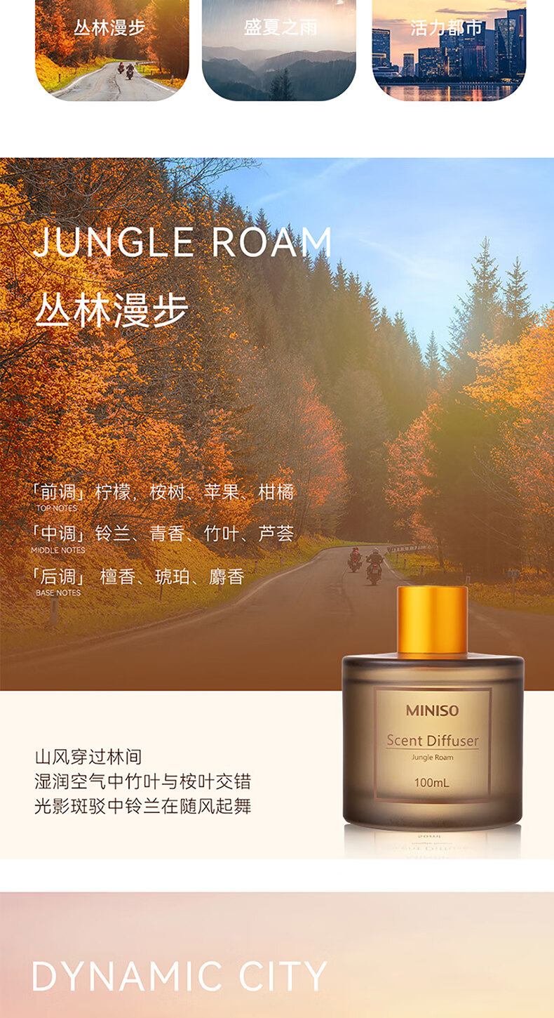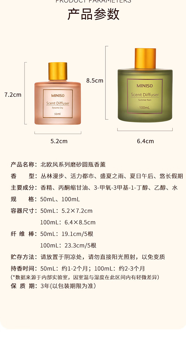 • 商品名称:名创优品(MINISO)北欧风系列无火香薰室内厕所空气清新剂生日礼物丛林漫步100ml 圆瓶香薰/瓶