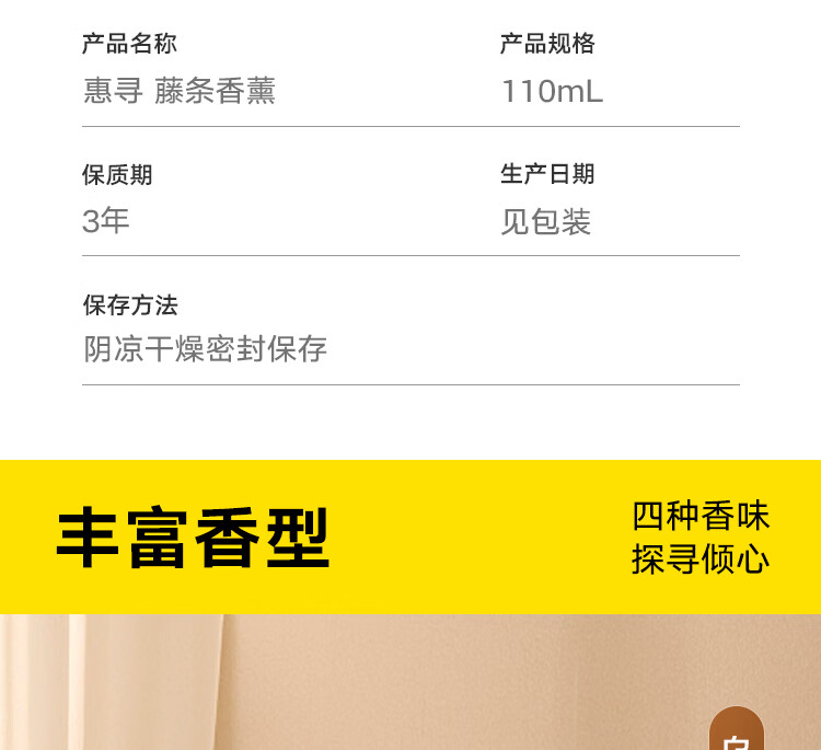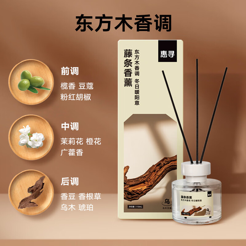 商品名称: 惠寻 无火香薰乌木沉香110ml 室内家用香氛香薰精油藤条香薰节日礼物 HXXX-04/盒