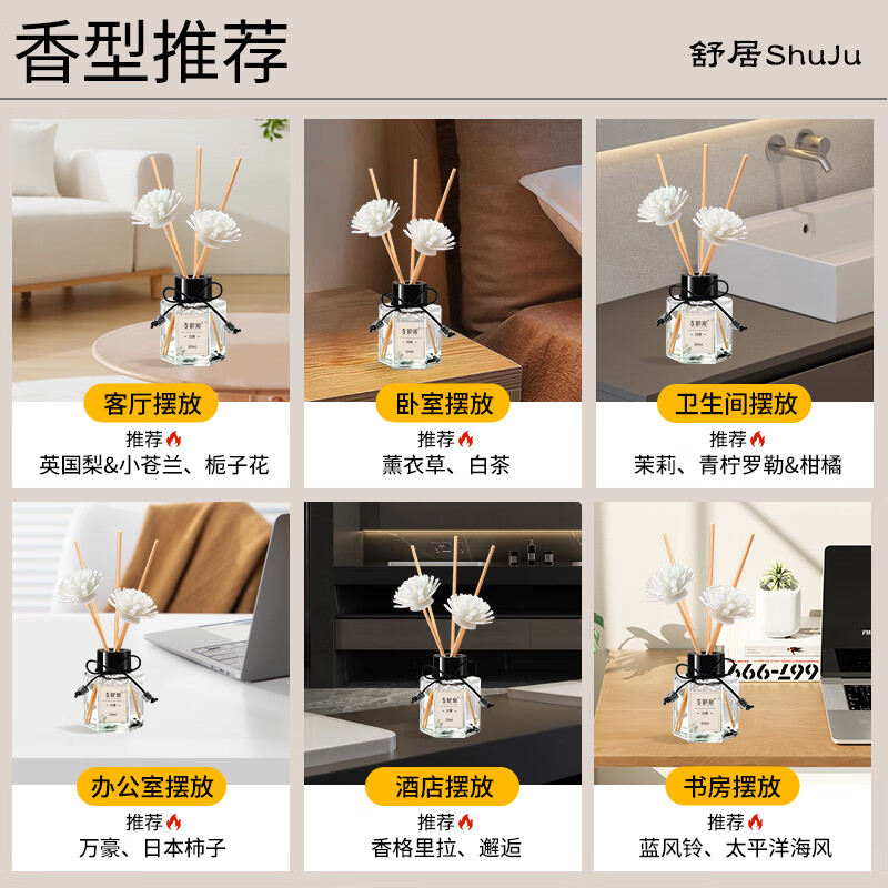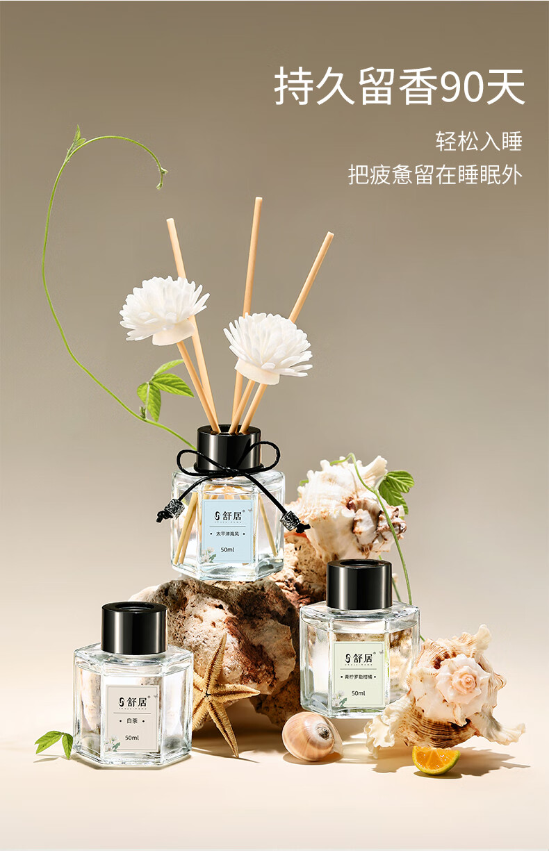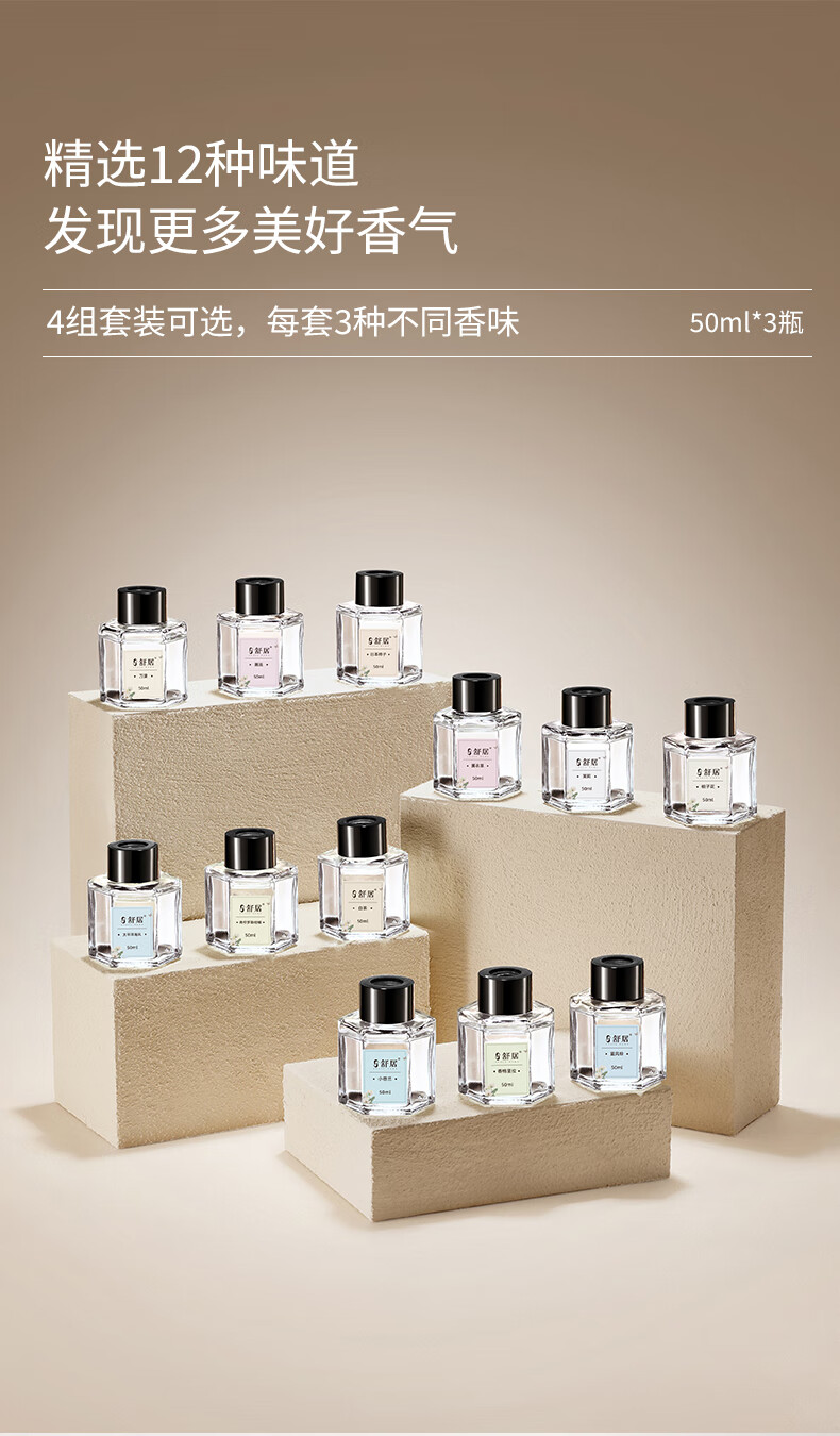 家居饰品  > 香薰/香薰机  > 藤条香薰  >  舒居/SHUJUHOME  >  舒居无火香薰(三瓶装)室内卧室房间香氛香熏瓶厕所空气清新剂150ml 无火香熏A香水组/瓶
