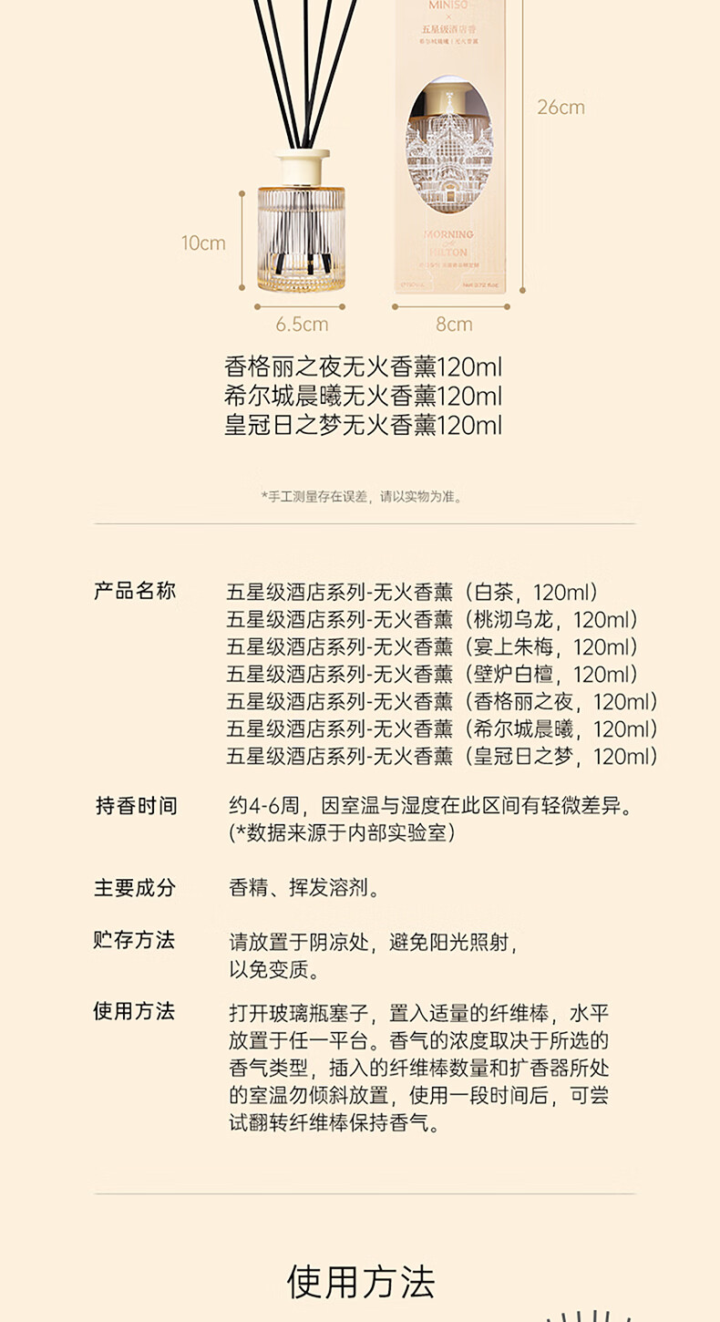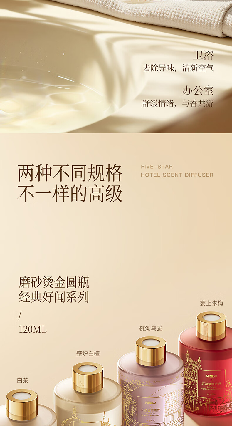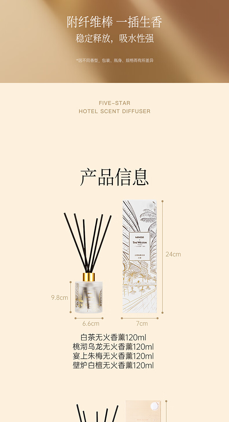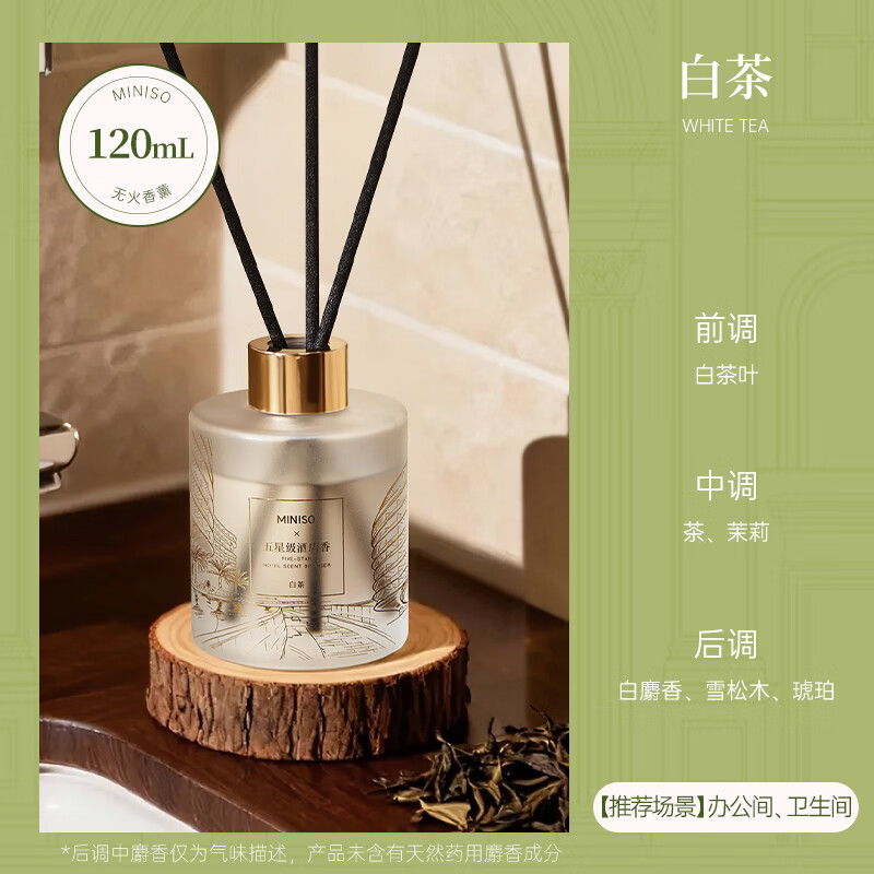商品名称: 名创优品(MINISO)五星级酒店无火香薰室内空气清新剂卧室香氛新年礼物白茶120ml 香薰/件
