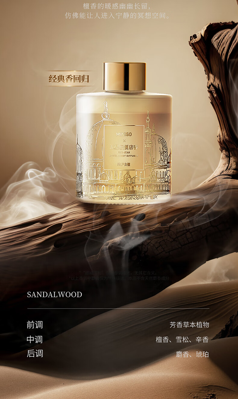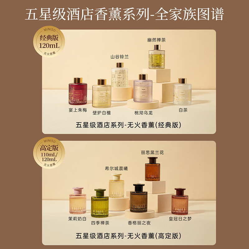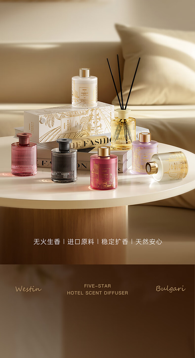 家居饰品  > 香薰/香薰机  > 藤条香薰  >  名创优品/MINISO  >  名创优品(MINISO)五星级酒店无火香薰室内空气清新剂卧室香氛新年礼物白茶120ml 香薰/件