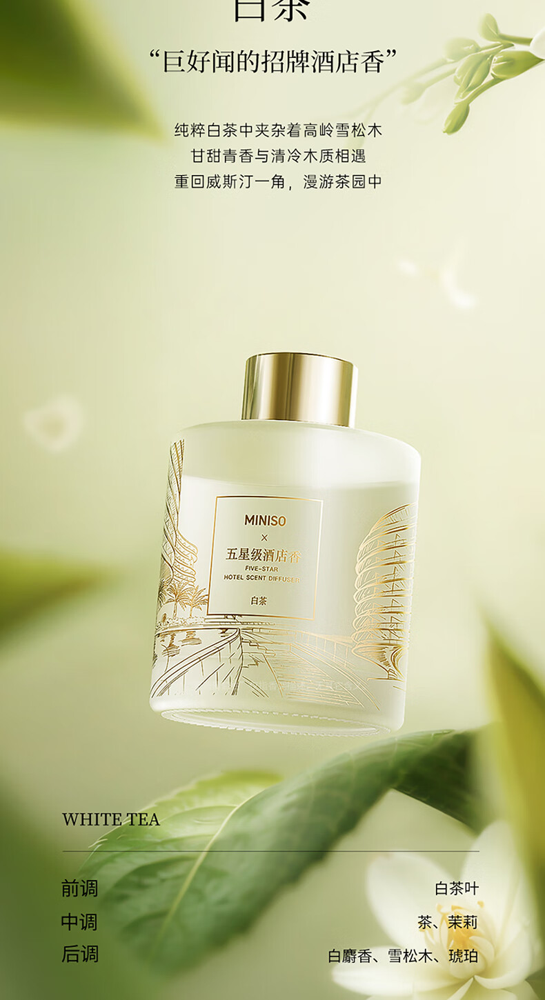 名创优品(MINISO)五星级酒店无火香薰室内空气清新剂卧室香氛新年礼物白茶120ml 香薰/件
