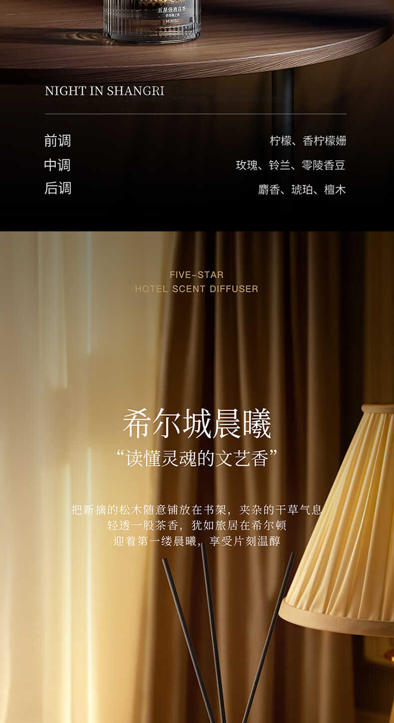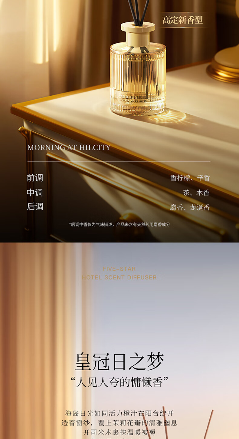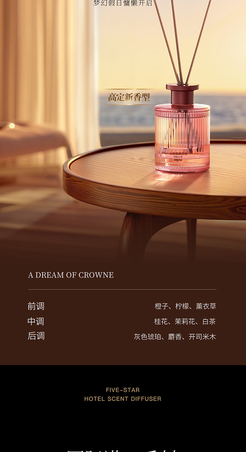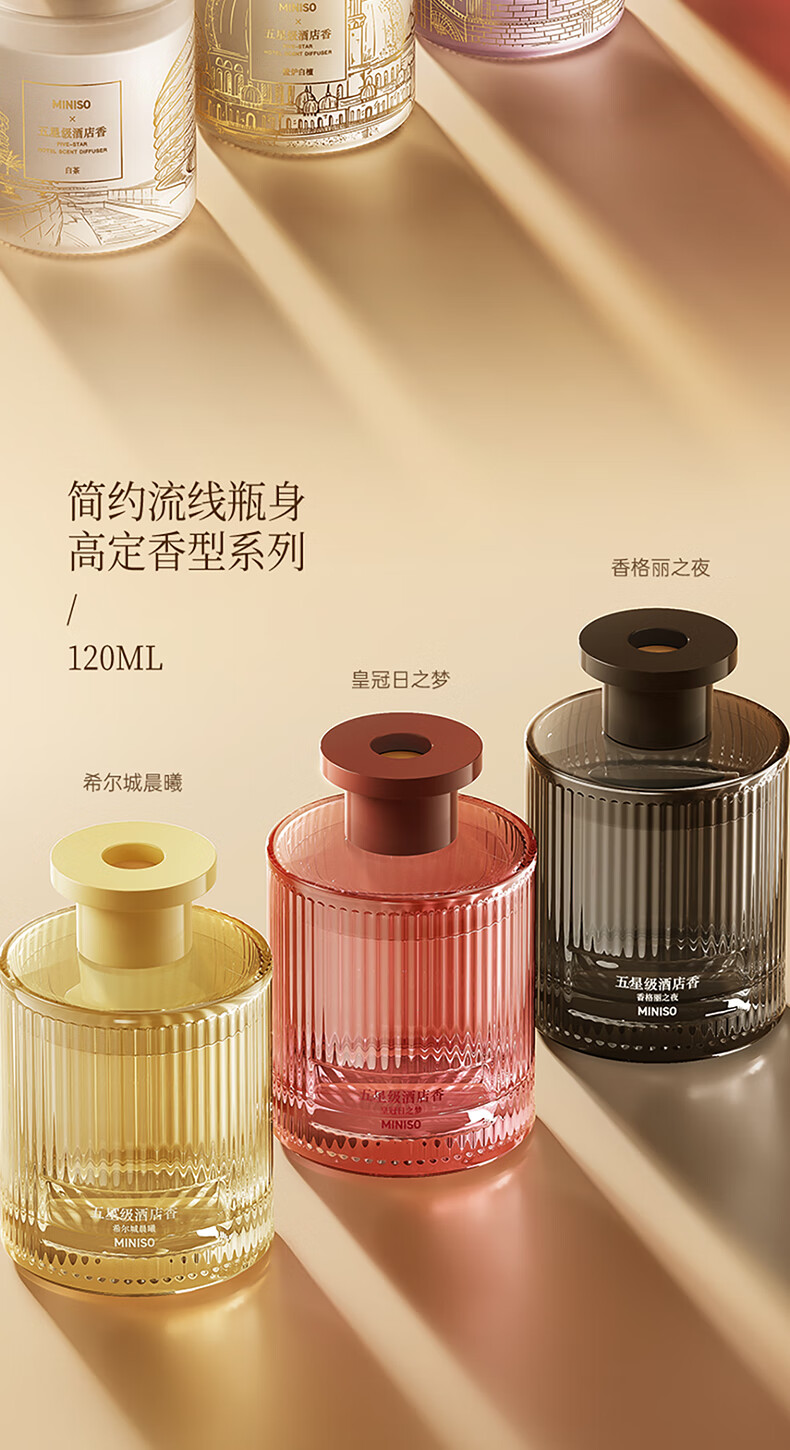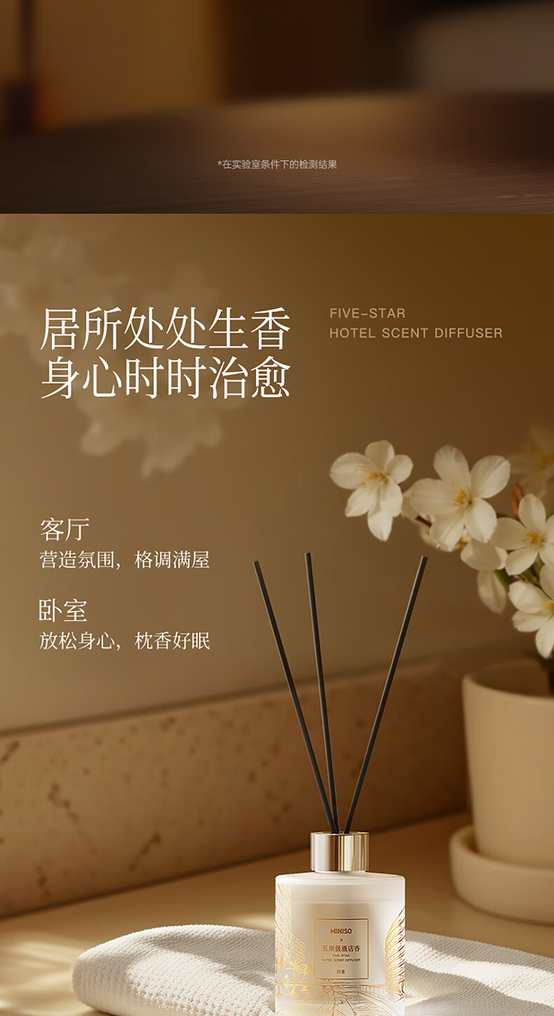 • 商品名称:名创优品(MINISO)五星级酒店无火香薰室内空气清新剂卧室香氛新年礼物白茶120ml 香薰/件
