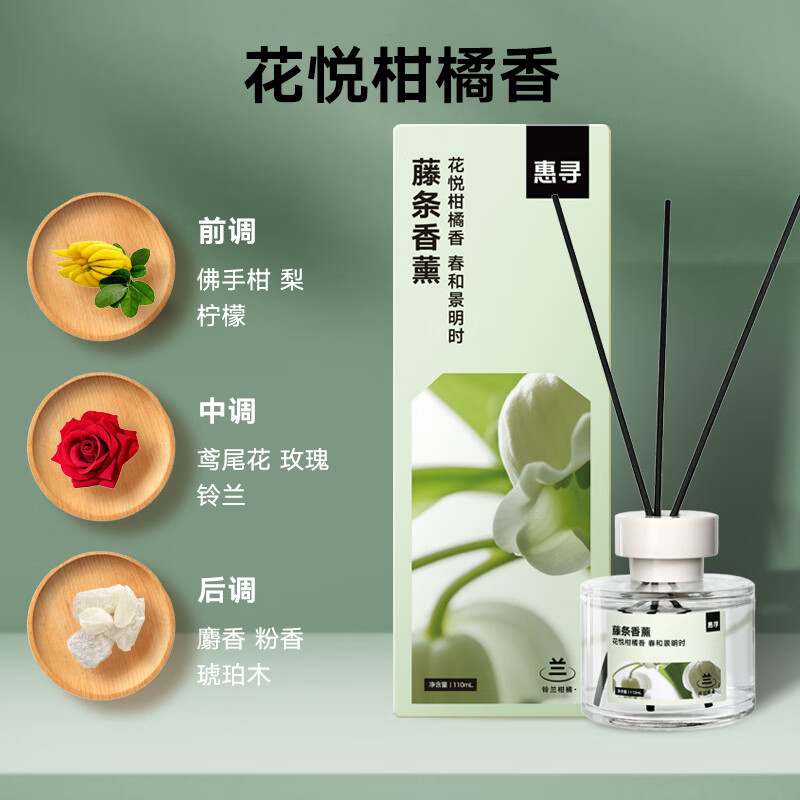 • 商品名称:惠寻无火香薰 铃兰柑橘110ml室内家用香氛香薰精油藤条香薰节日礼物 HXXX-05/盒