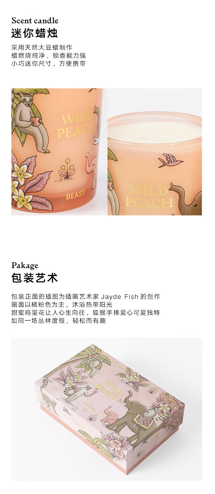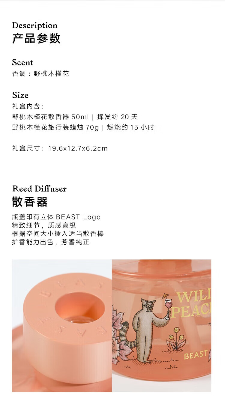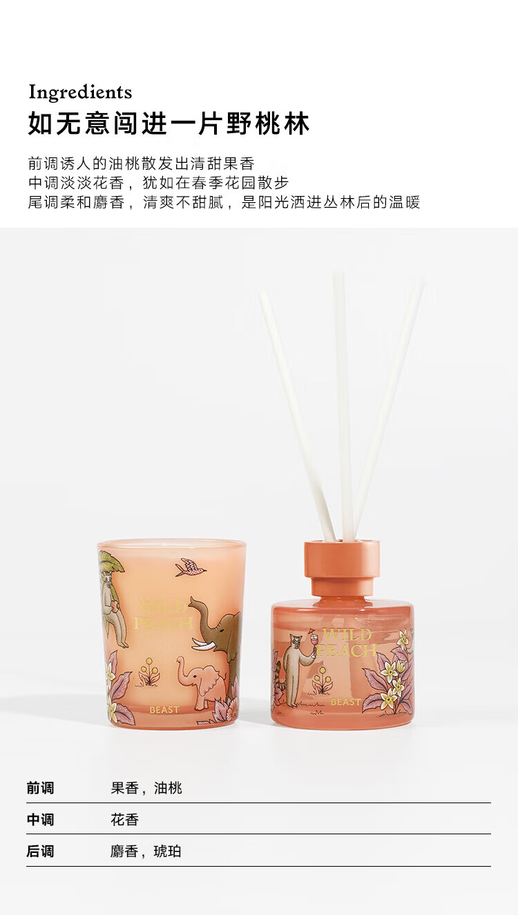 • 商品名称:野兽派(THE BEAST)【新年礼物】Jungle野桃木槿花香薰蜡烛礼盒室内新婚生日礼物 368221201/箱