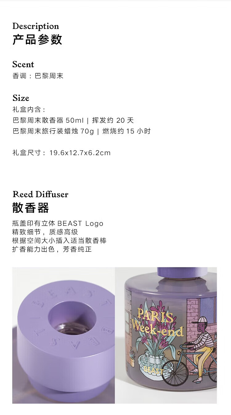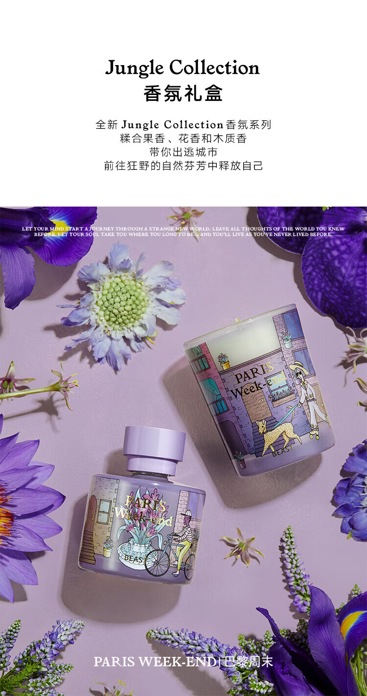 家居饰品  > 香薰/香薰机  > 香薰套装/礼盒  >  野兽派/BEAST  >  野兽派(THE BEAST)【新年礼物】Jungle巴黎周末香薰蜡烛礼盒室内香薰新婚生日礼物 368221221/箱