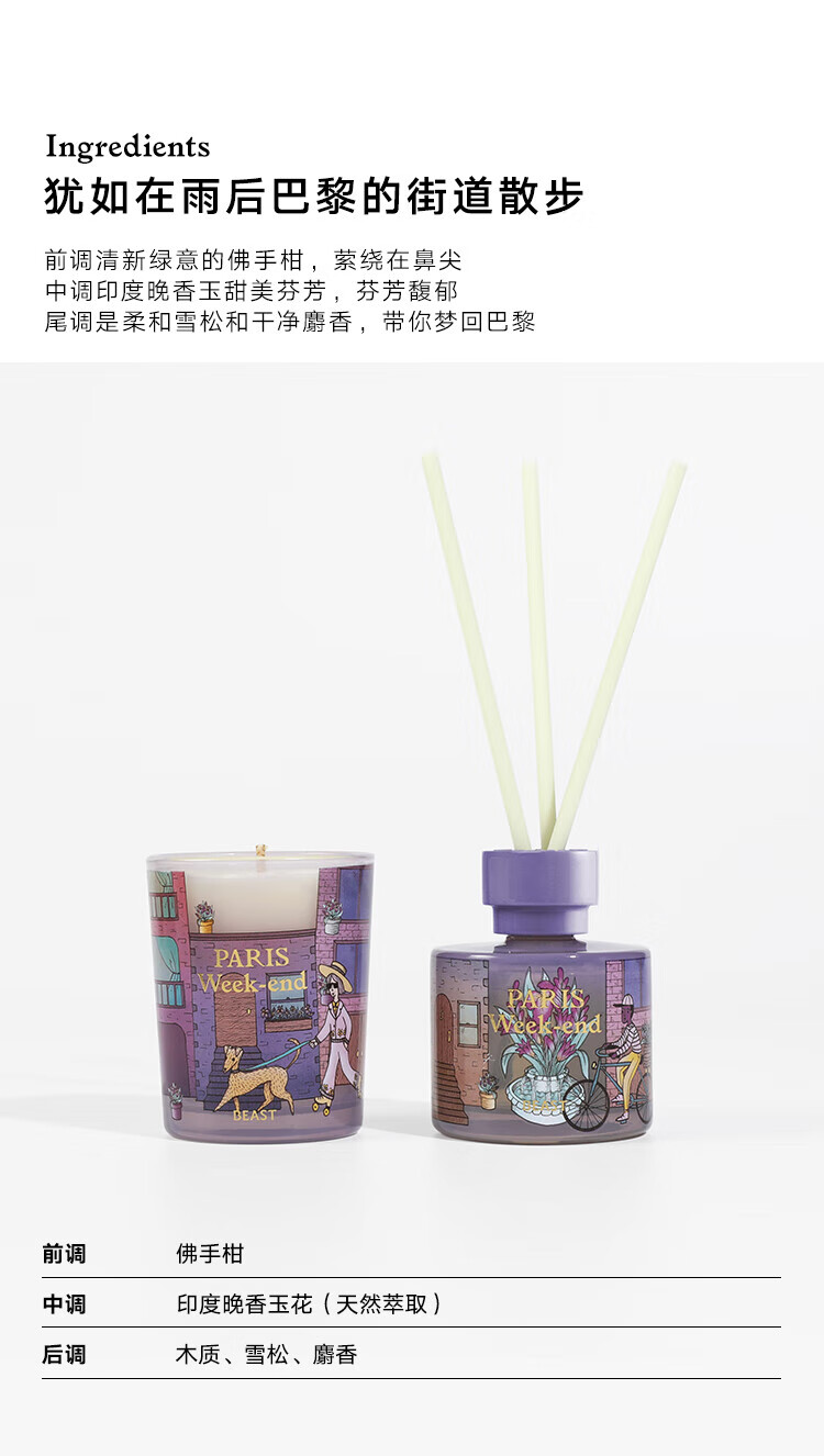 商品名称: 野兽派(THE BEAST)【新年礼物】Jungle巴黎周末香薰蜡烛礼盒室内香薰新婚生日礼物 368221221/箱