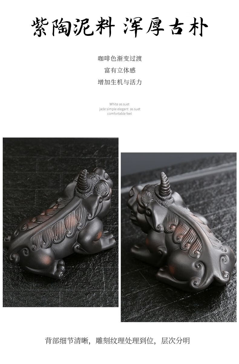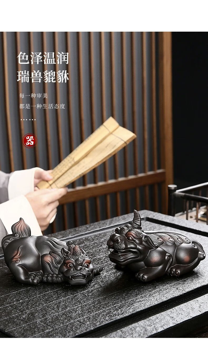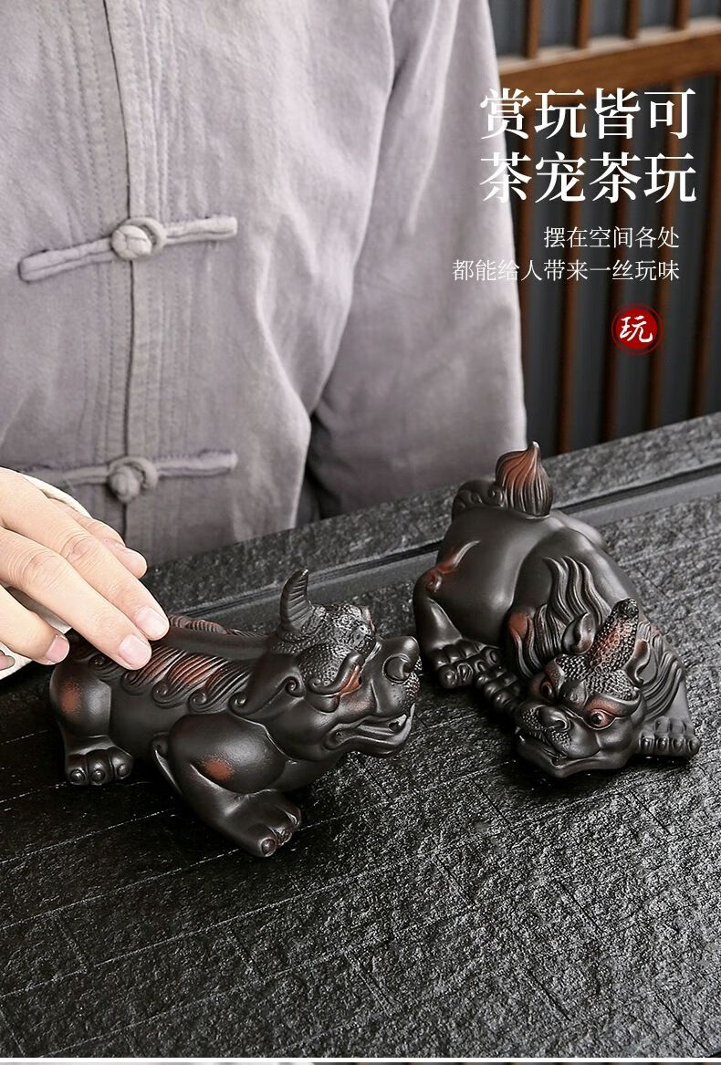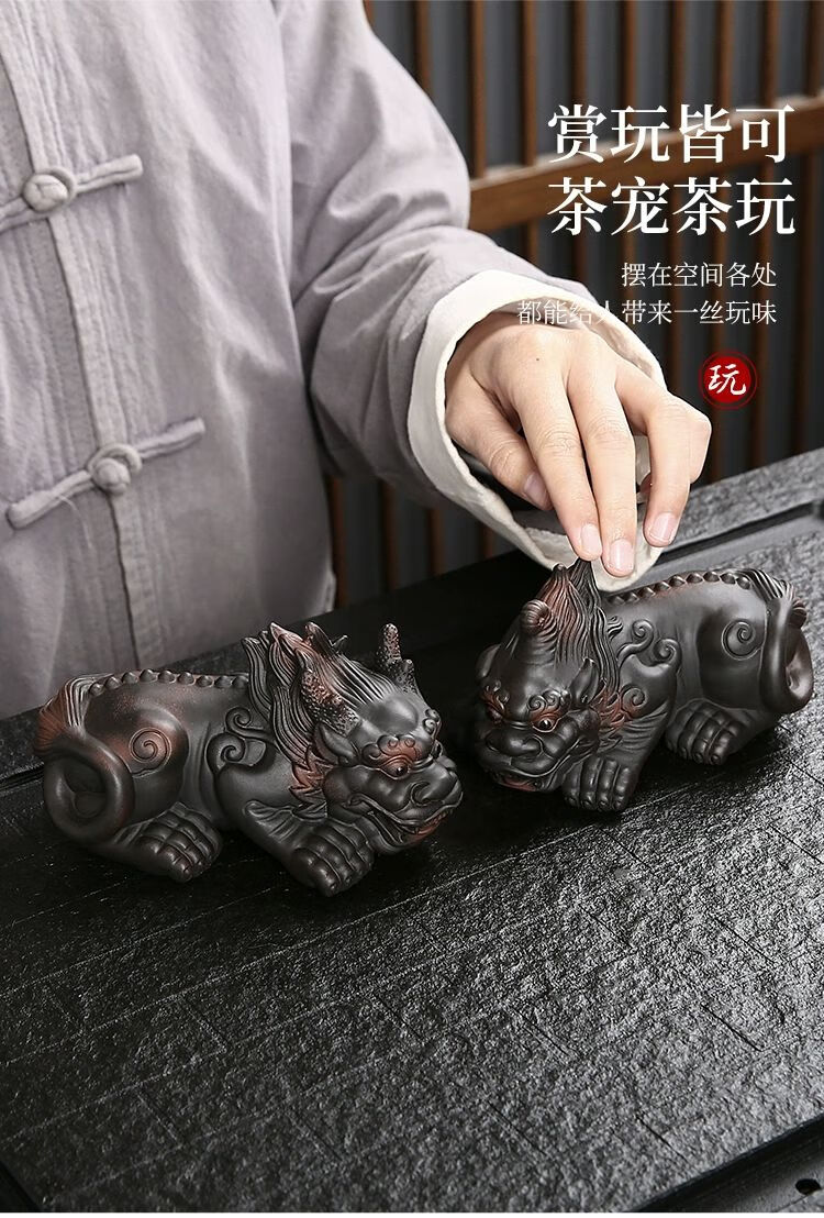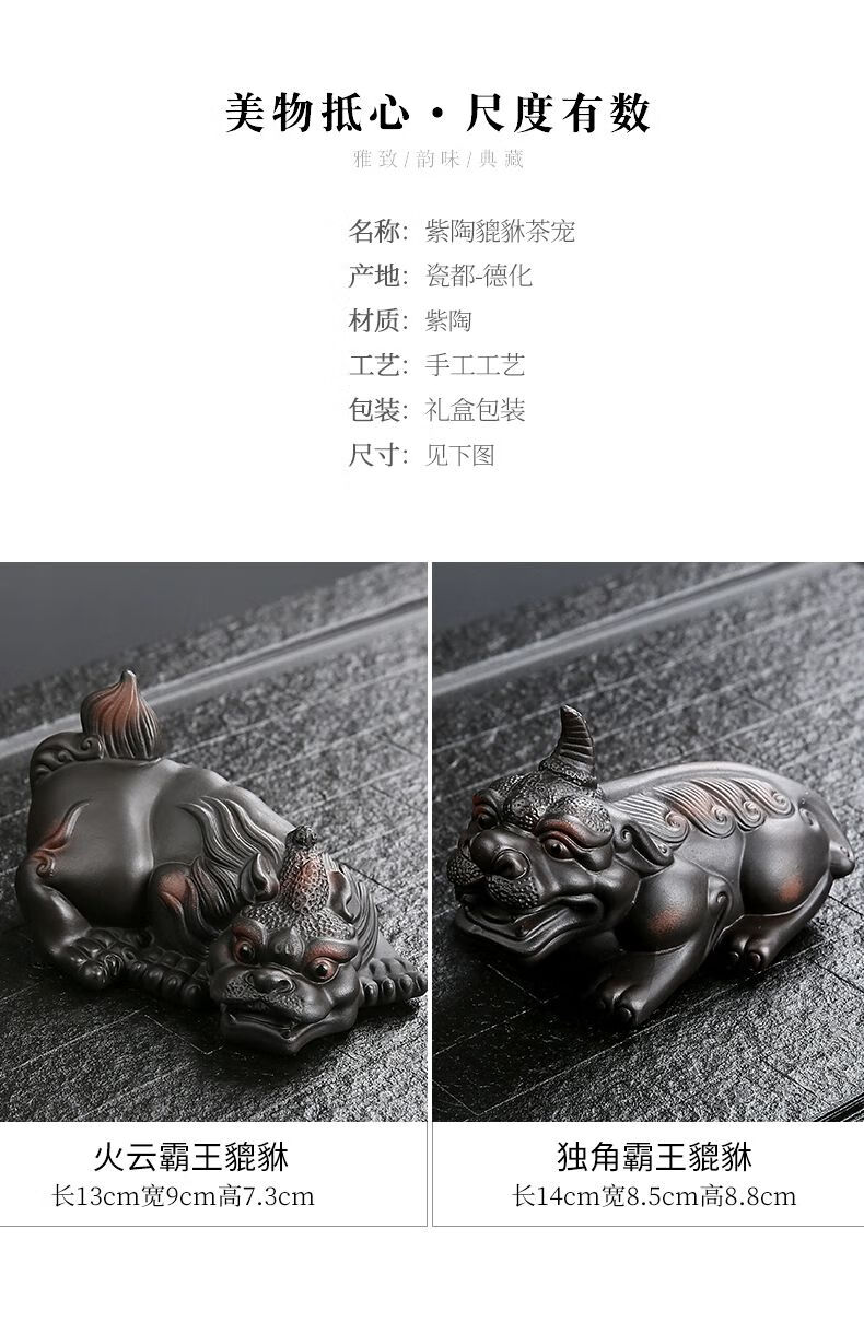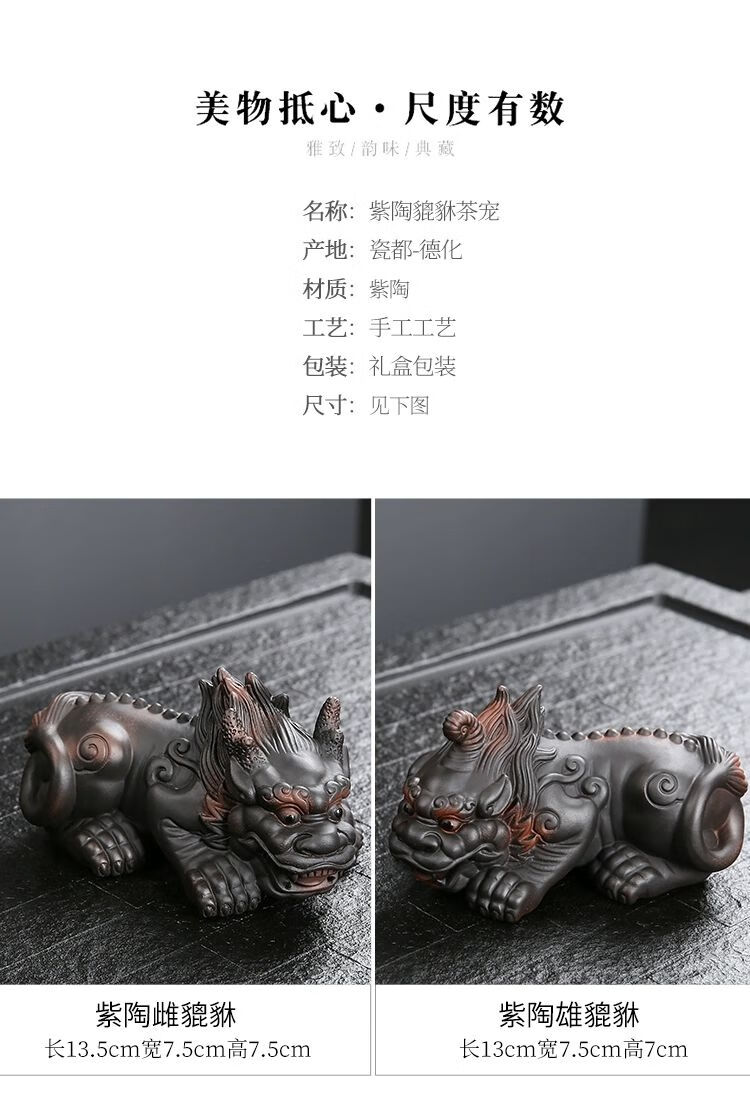 • 商品名称:靓厅紫陶貔貅茶宠摆件一对精品可养手工高档霸王招财茶台茶桌茶具 紫陶霸王貔貅一对(火云+独角)/个