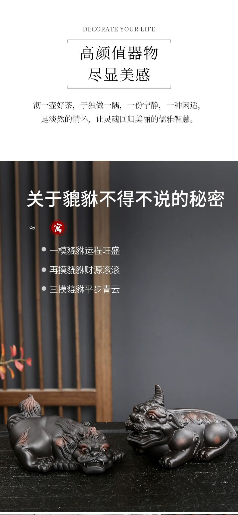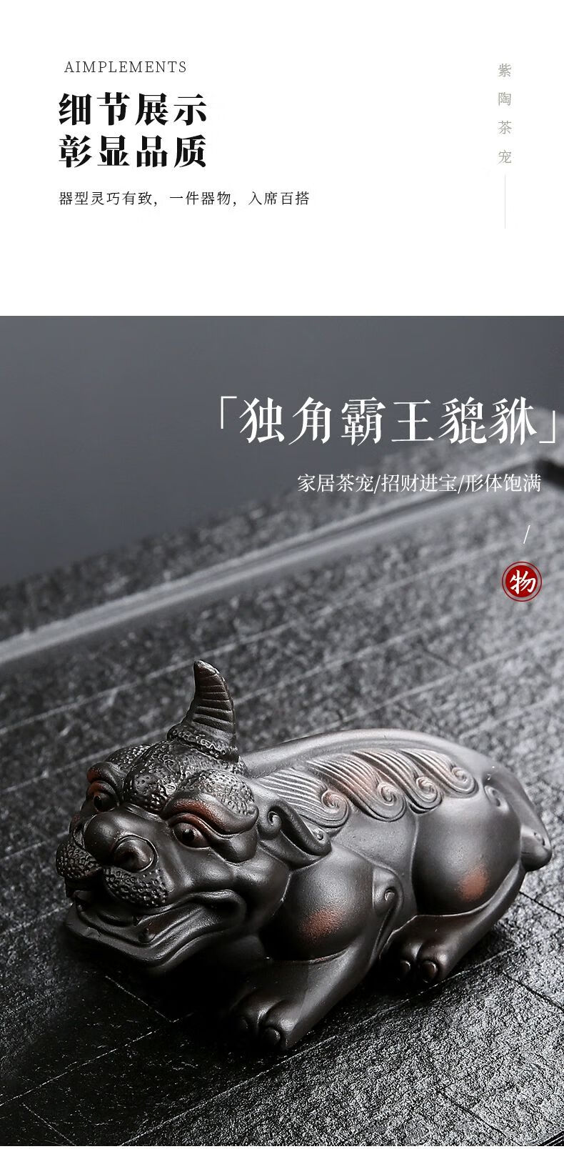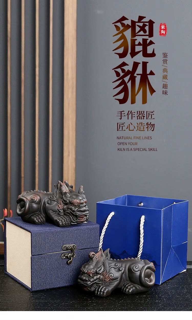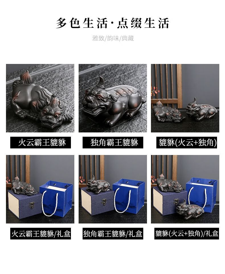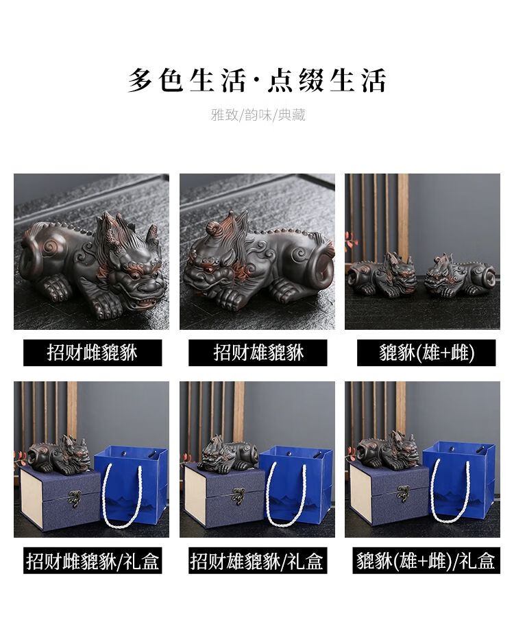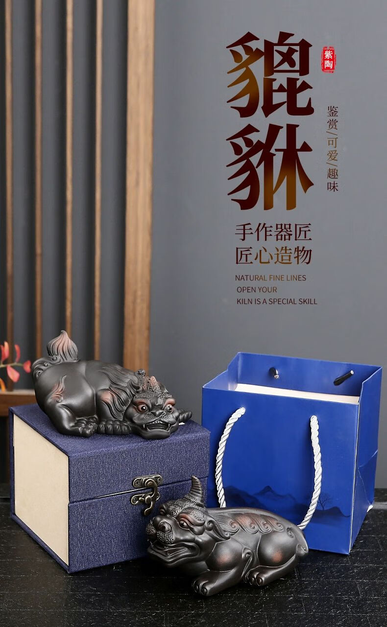• 商品名称:靓厅紫陶貔貅茶宠摆件一对精品可养手工高档霸王招财茶台茶桌茶具 紫陶霸王貔貅一对(火云+独角)/个