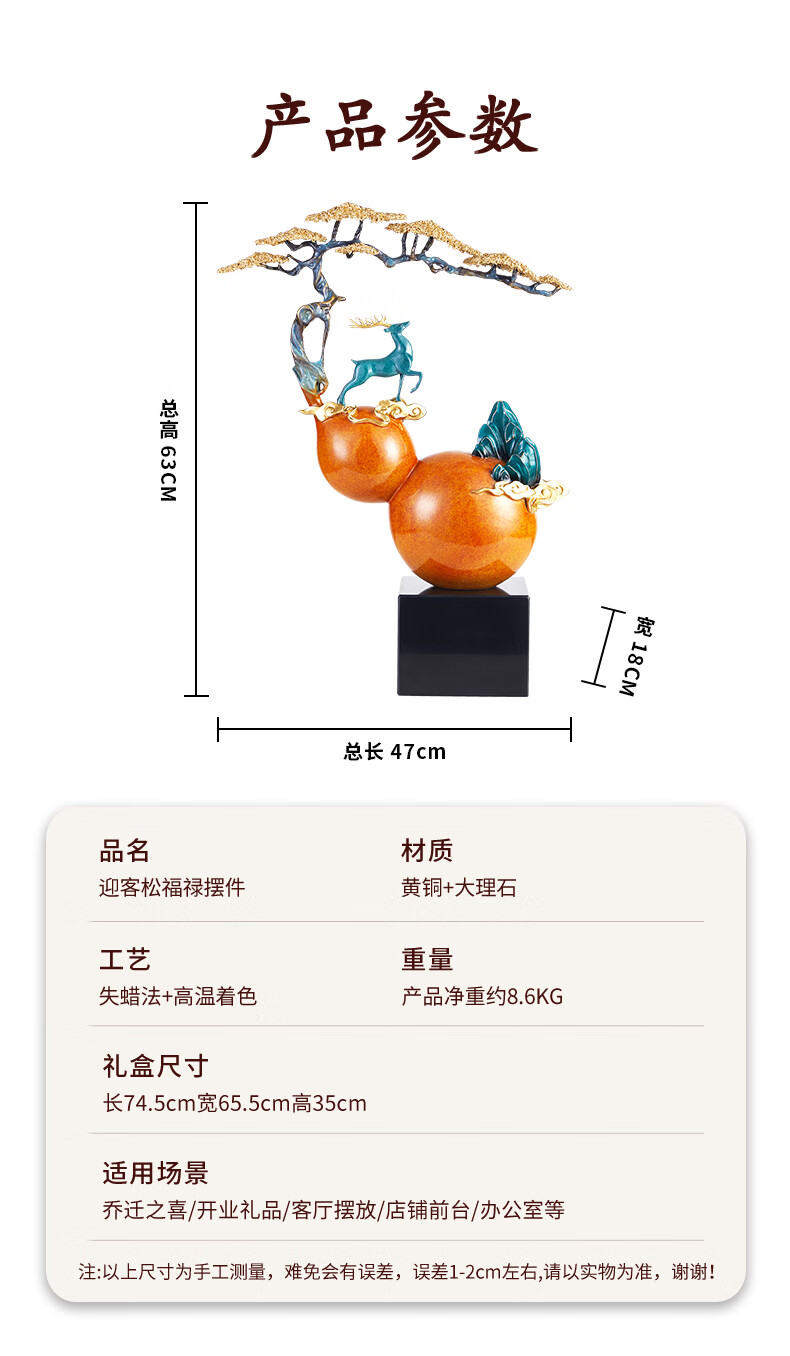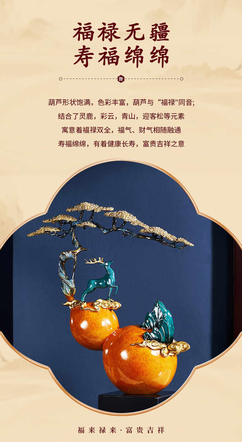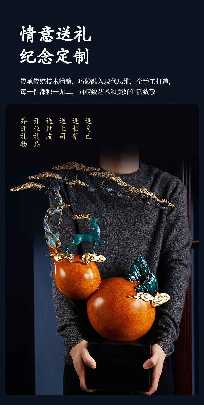 • 商品名称:诺诗曼葫芦摆件大号迎客松客厅玄关装饰开业礼品乔迁之喜搬家礼物工艺品 迎客松铜葫芦大号/个
