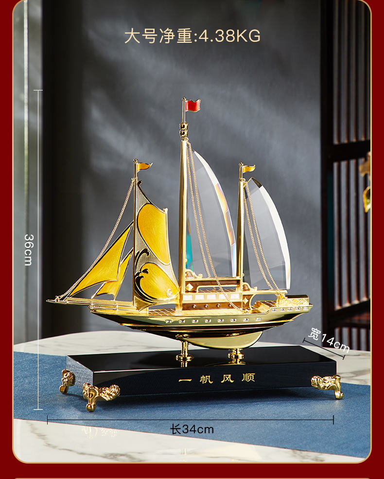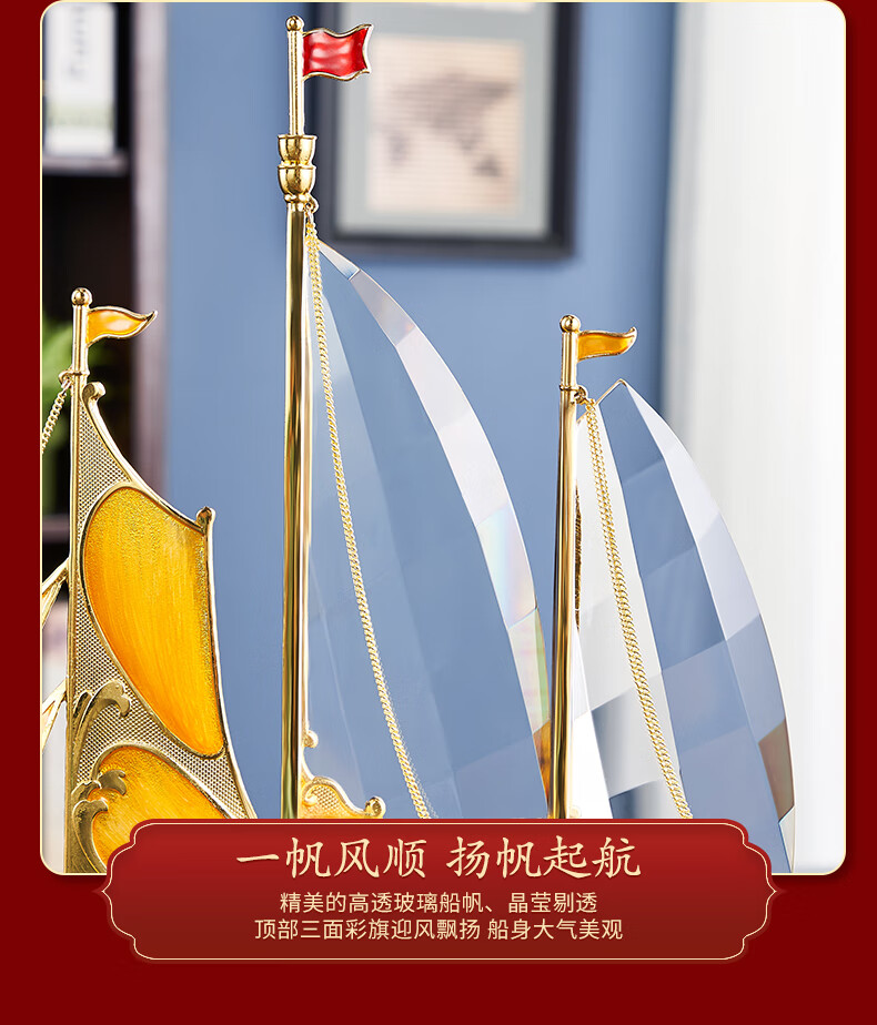 • 商品名称:诺诗曼一帆风顺帆船摆件客厅老板办公室桌面高档装饰品乔迁升职开业礼品 一帆风顺摆件/条