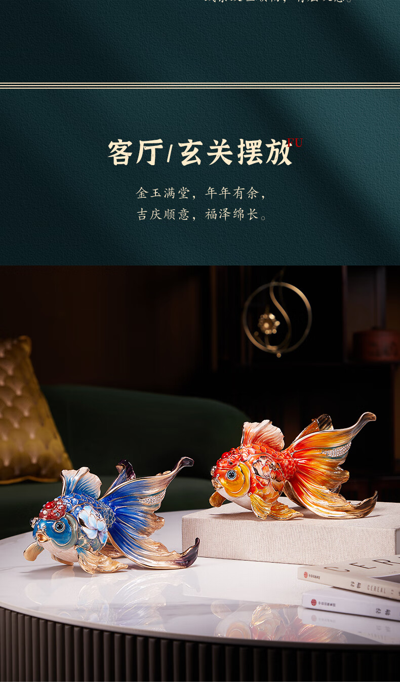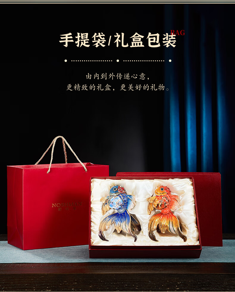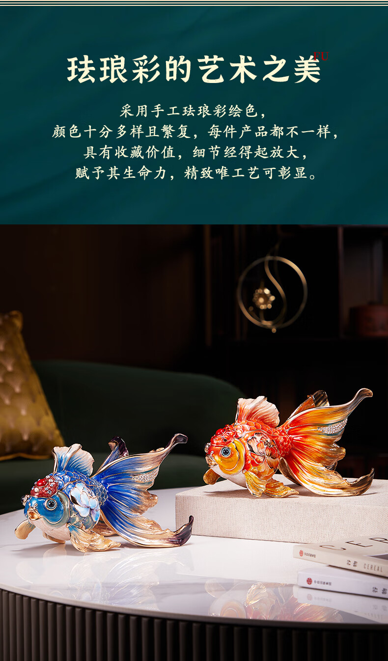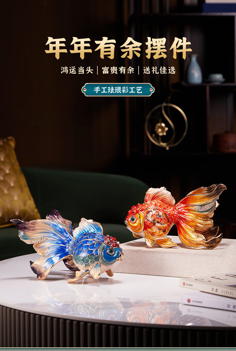 • 商品名称:诺诗曼年年有余珐琅彩金鱼摆件开业乔迁之喜搬家礼物客厅办公室酒柜装饰 珐琅彩金鱼摆件一对/对