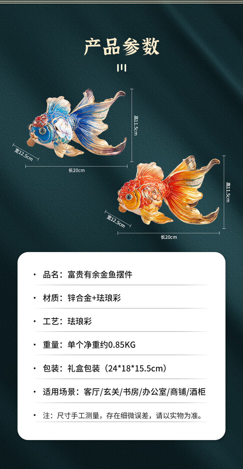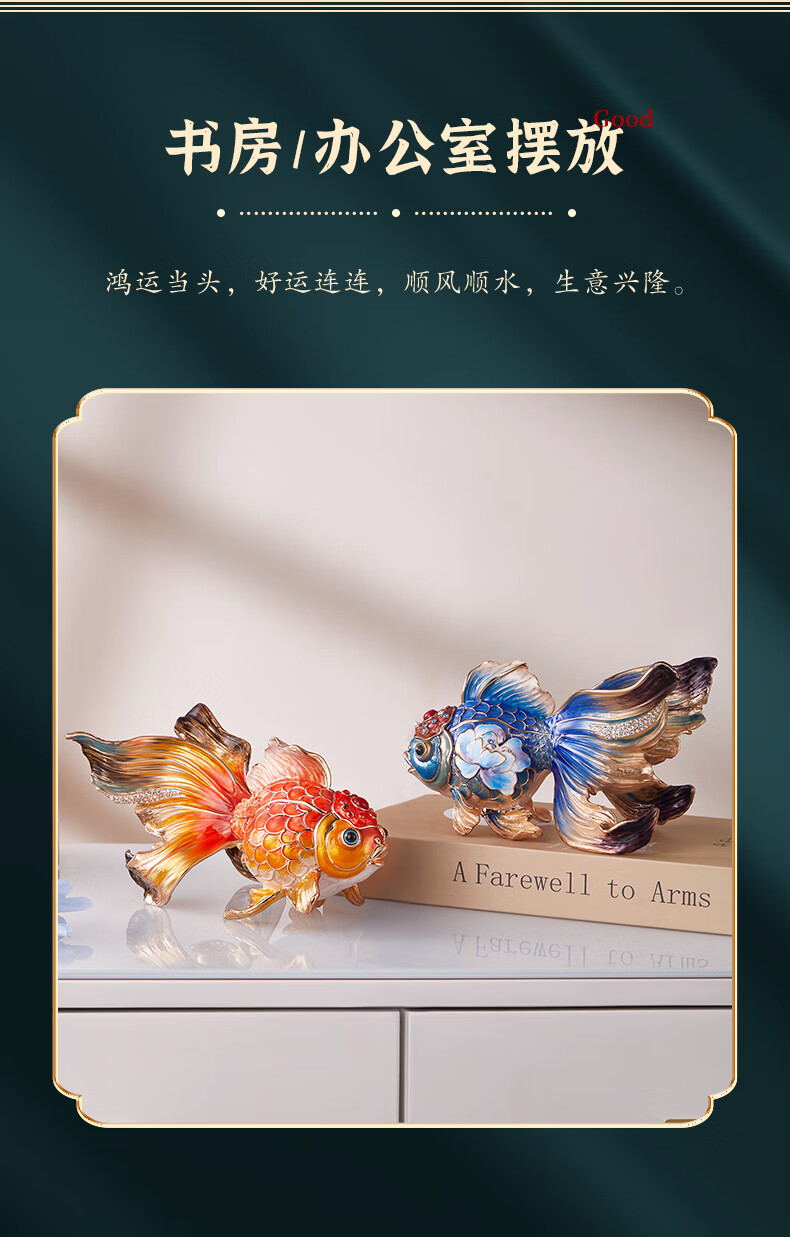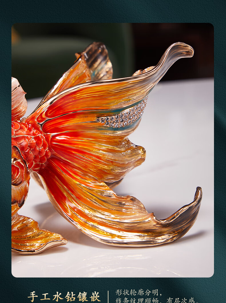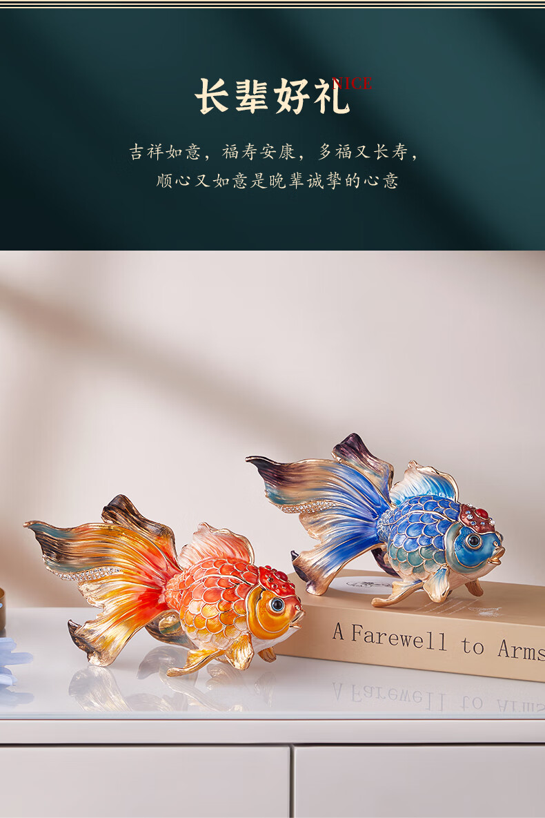 • 商品名称:诺诗曼年年有余珐琅彩金鱼摆件开业乔迁之喜搬家礼物客厅办公室酒柜装饰 珐琅彩金鱼摆件一对/对