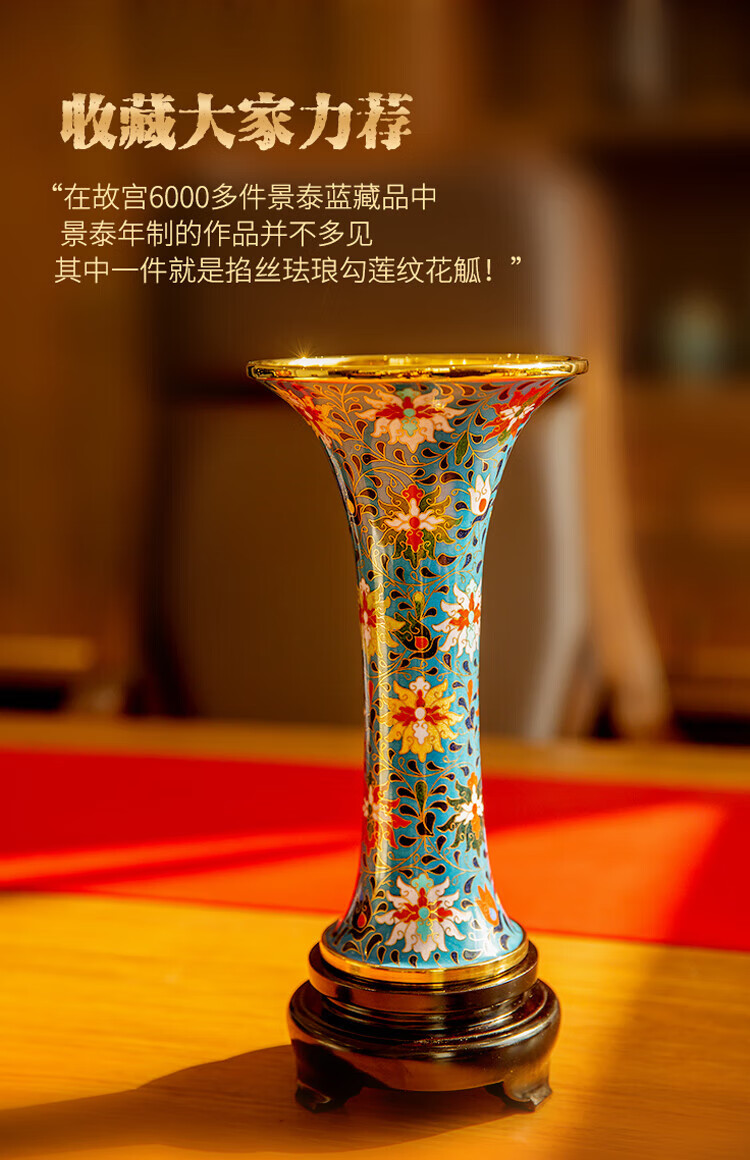 家居饰品  > 摆件  > 桌面摆件  >  中外珐琅美术馆/SINO-FOREIGN ENAMEL GALLERY  >  中外珐琅美术馆福运连升万寿连延花瓶景泰蓝桌面摆件礼品生日礼物贺寿国外赠礼 《掐丝珐琅勾莲纹花觚》_苑洪琪、刘永森(单瓶)/件