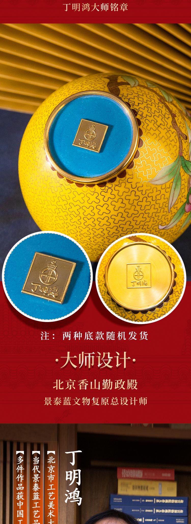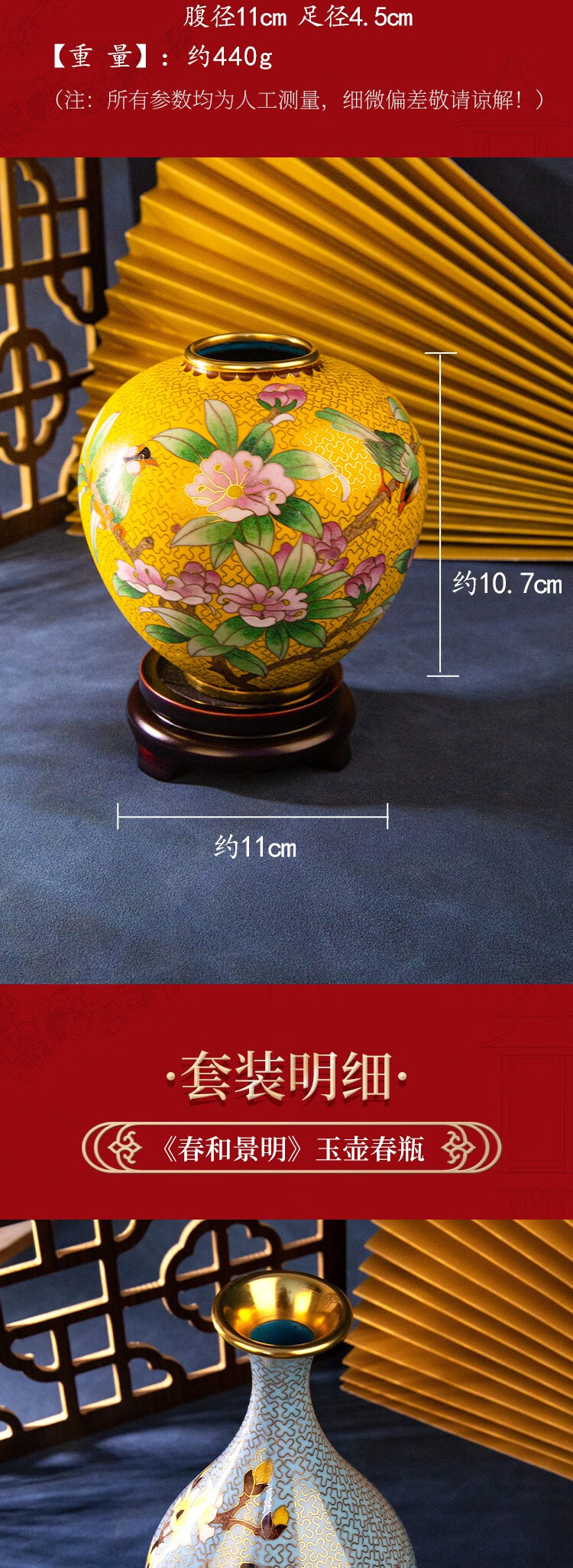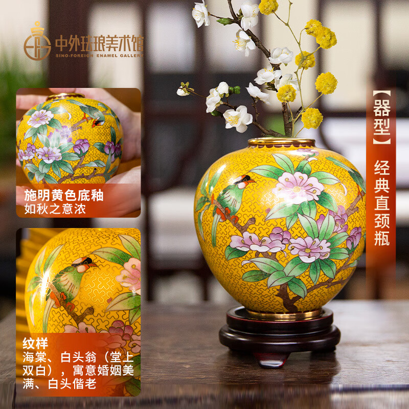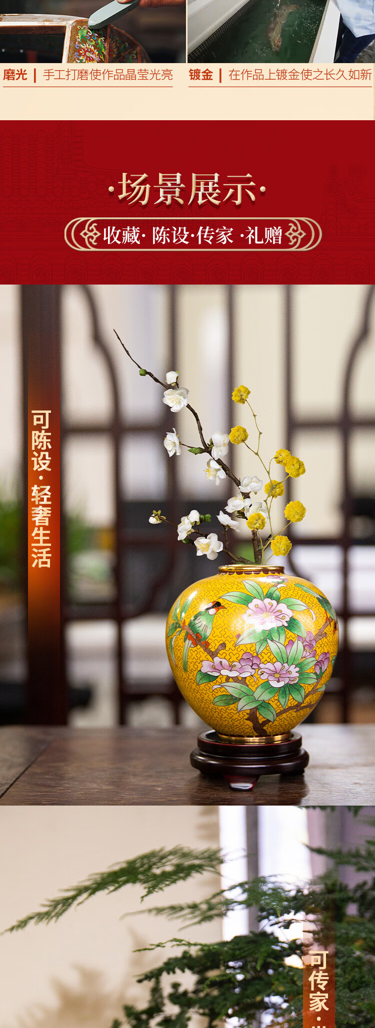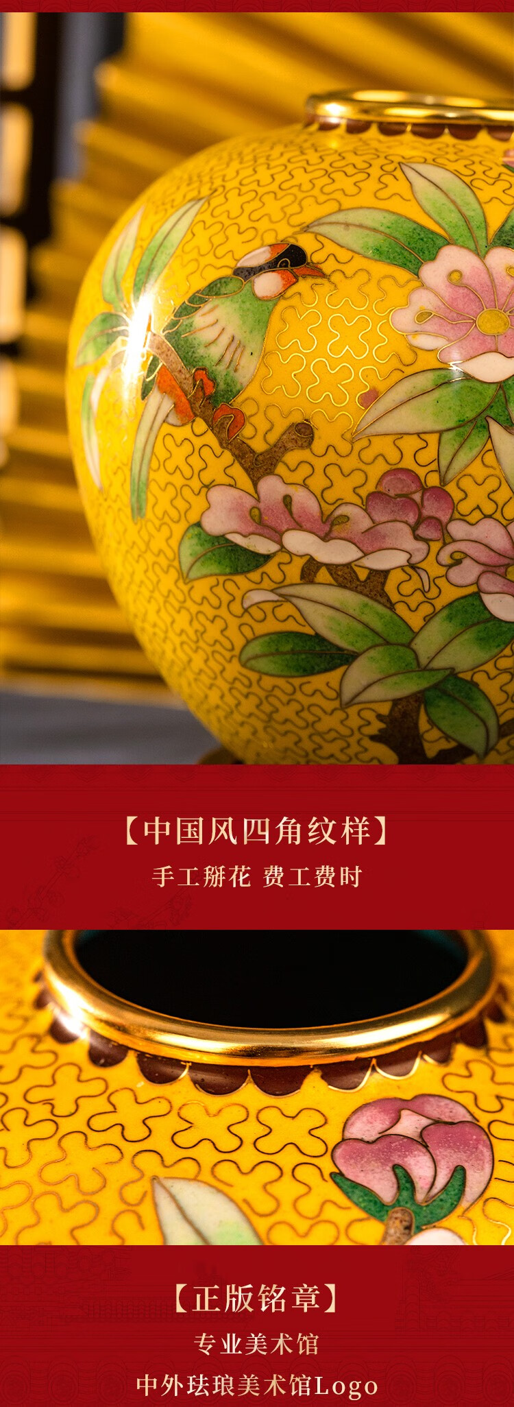 • 商品名称:中外珐琅美术馆多子多福玉堂富贵 花瓶景泰蓝礼品生日礼物客厅书房办公室摆件 《秋棠双辉》西瓜罐/个
