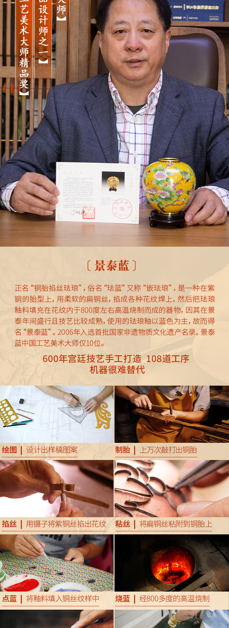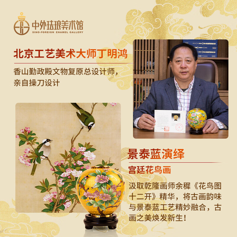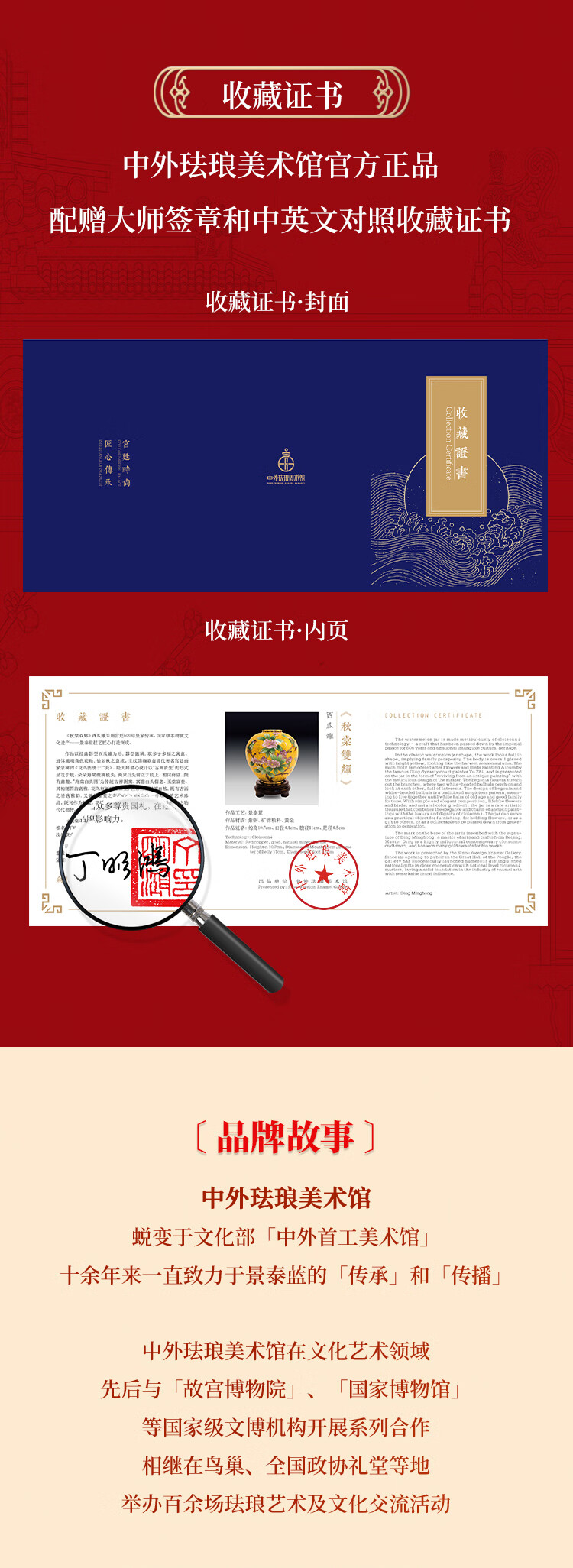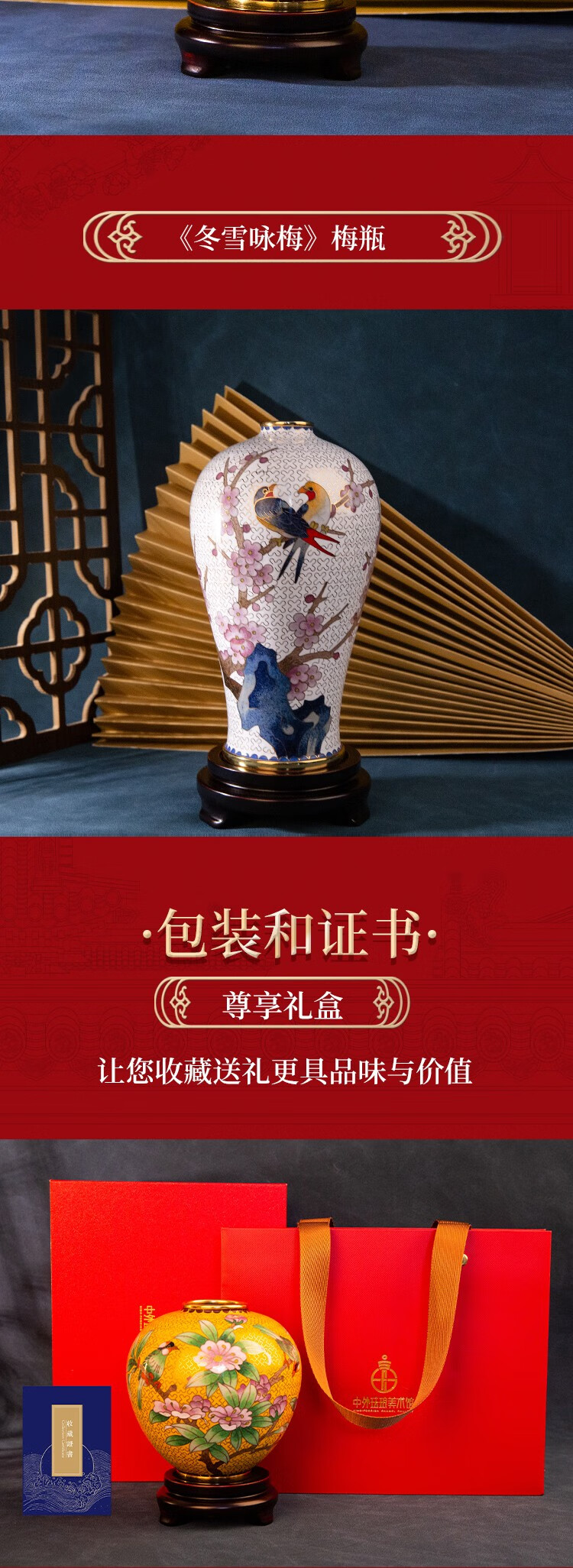 • 商品名称:中外珐琅美术馆多子多福玉堂富贵 花瓶景泰蓝礼品生日礼物客厅书房办公室摆件 《秋棠双辉》西瓜罐/个