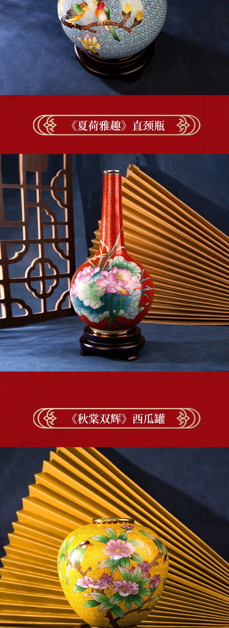 中外珐琅美术馆多子多福玉堂富贵 花瓶景泰蓝礼品生日礼物客厅书房办公室摆件 《秋棠双辉》西瓜罐/个