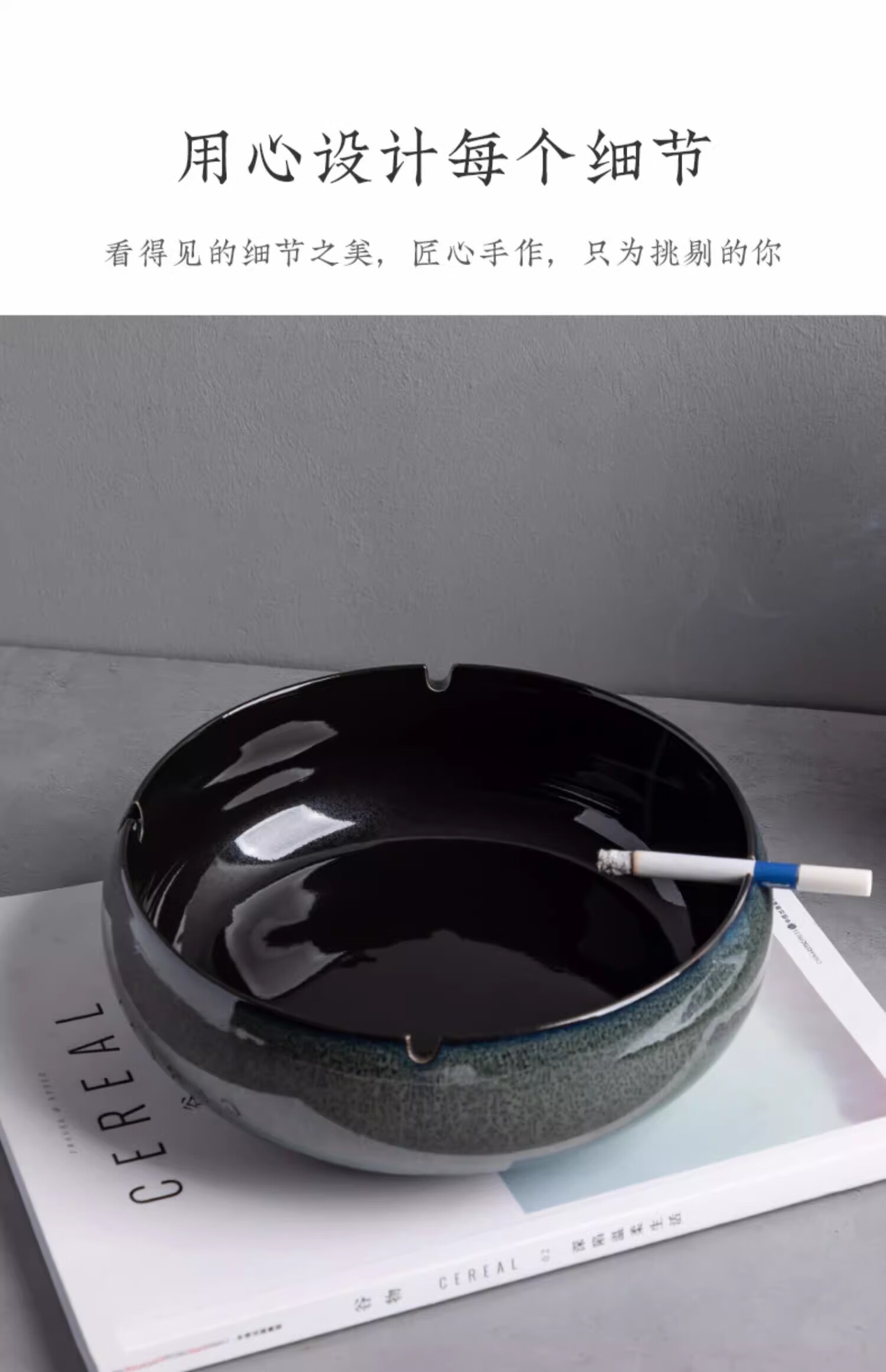 • 商品名称:板谷山烟灰缸 家用客厅陶瓷烟灰缸创意办公室烟缸摆件 深邃绿 挂钟/个